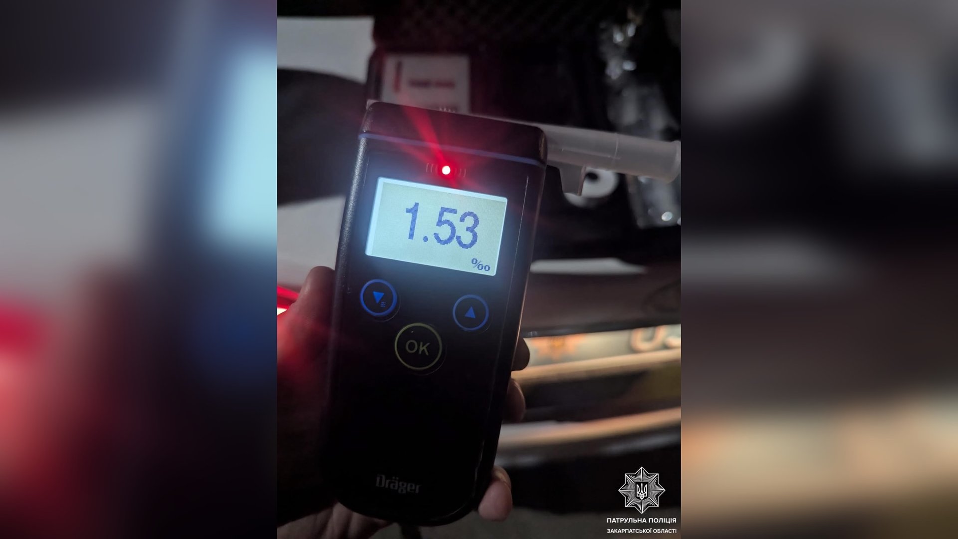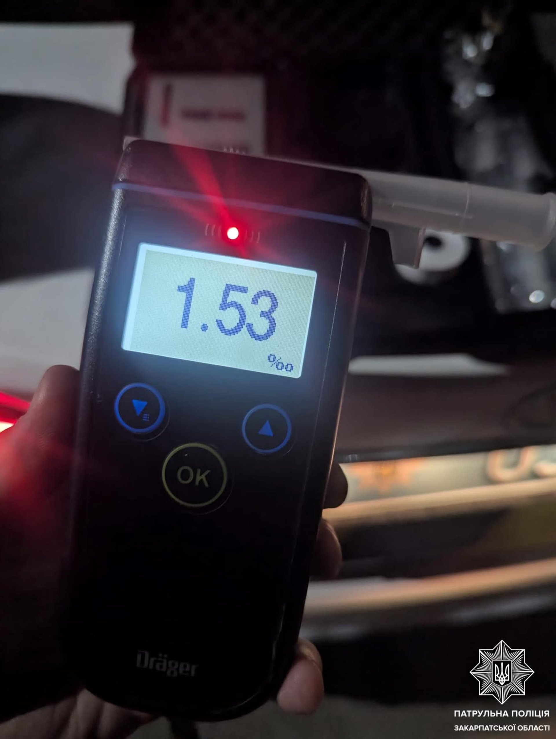 Результат огляду показав 1,53 проміле алкоголю, що більш ніж у сім разів перевищує допустиму норму.