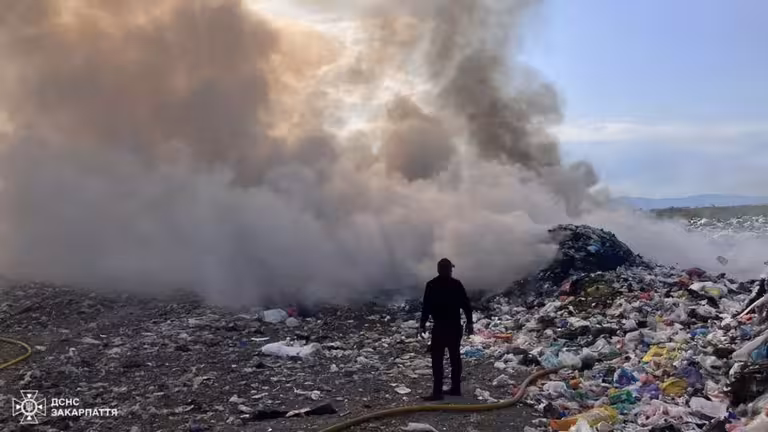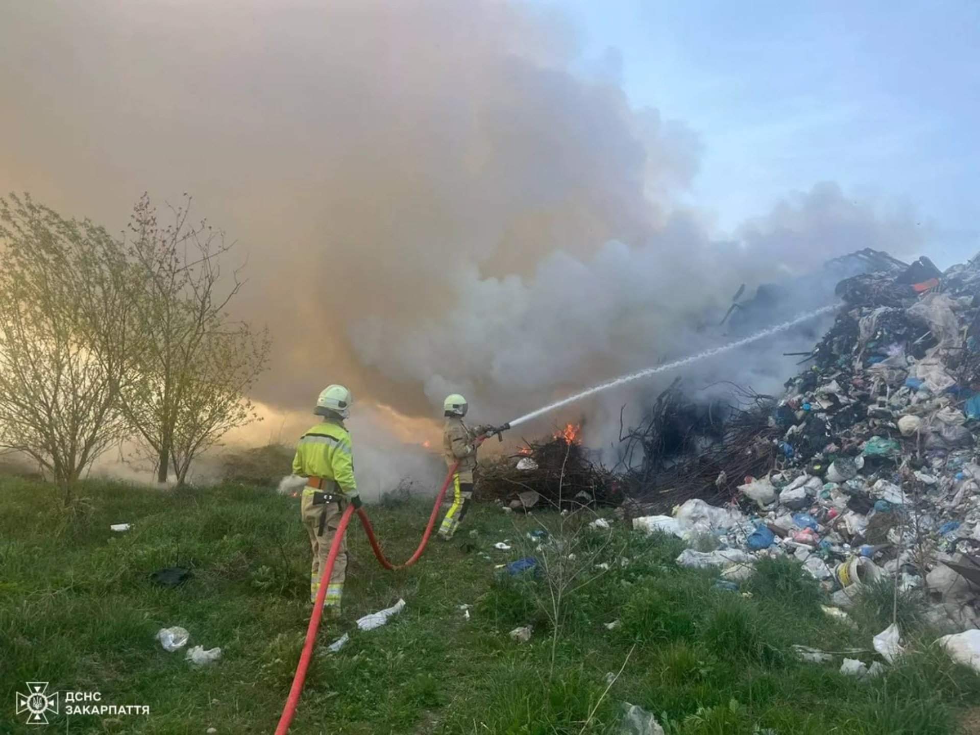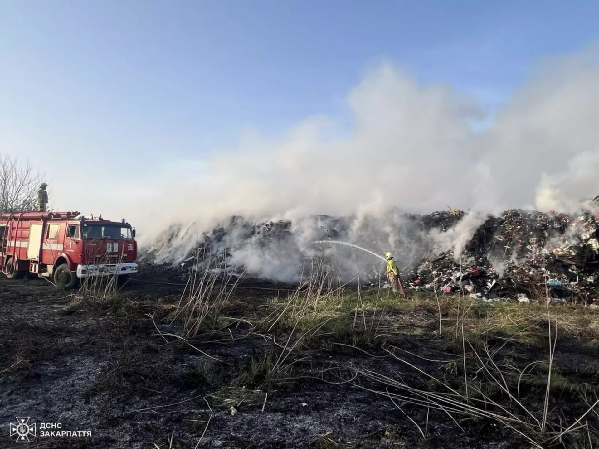 У Тячеві 14 квітня близько 16:25 виникла пожежа поблизу сміттєзвалища. Спочатку загорілася суха рослинність, однак згодом вогонь поширився на територію полігону.