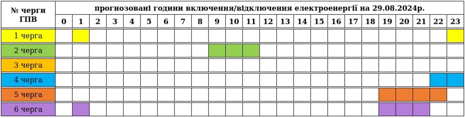 На Закарпатті 29 серпня для споживачів застосовують графіки погодинних відключень електроенергії. Обмеження діють протягом доби для всіх черг.
