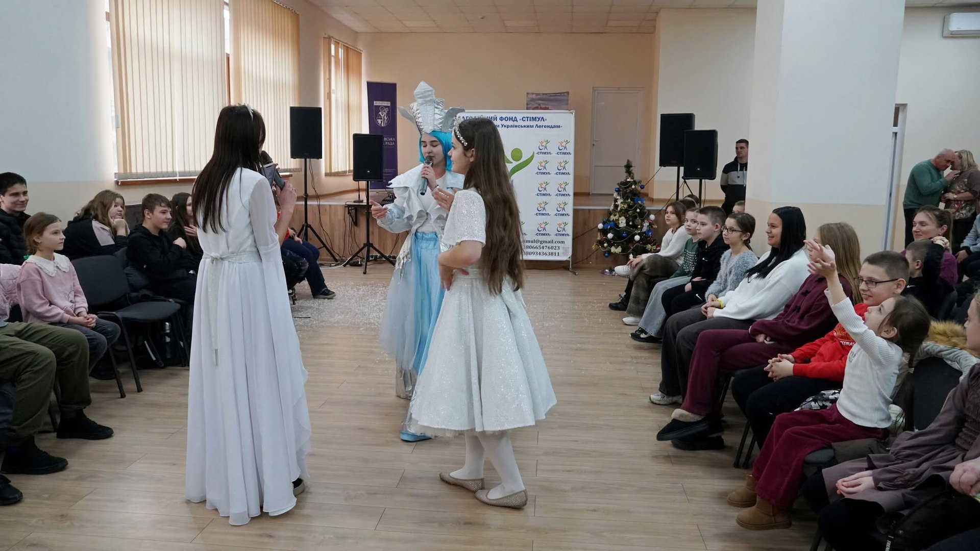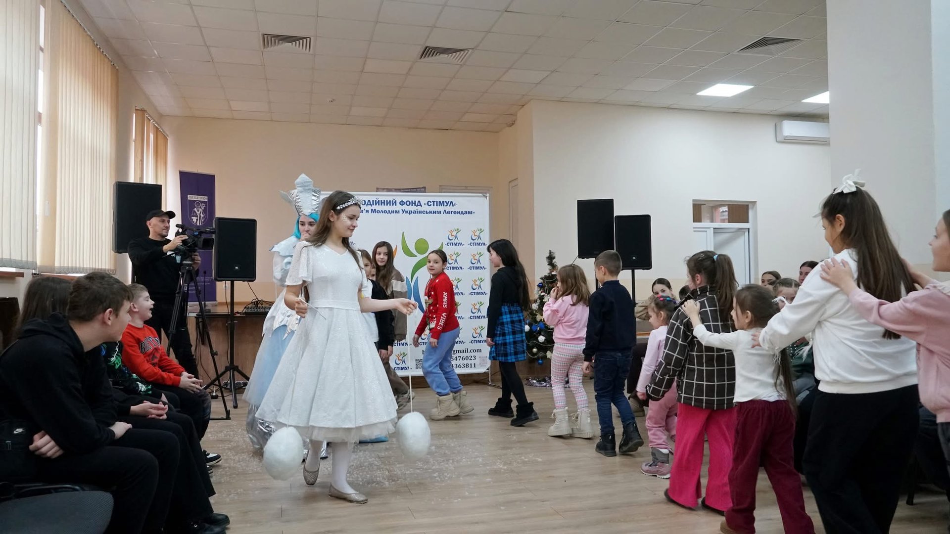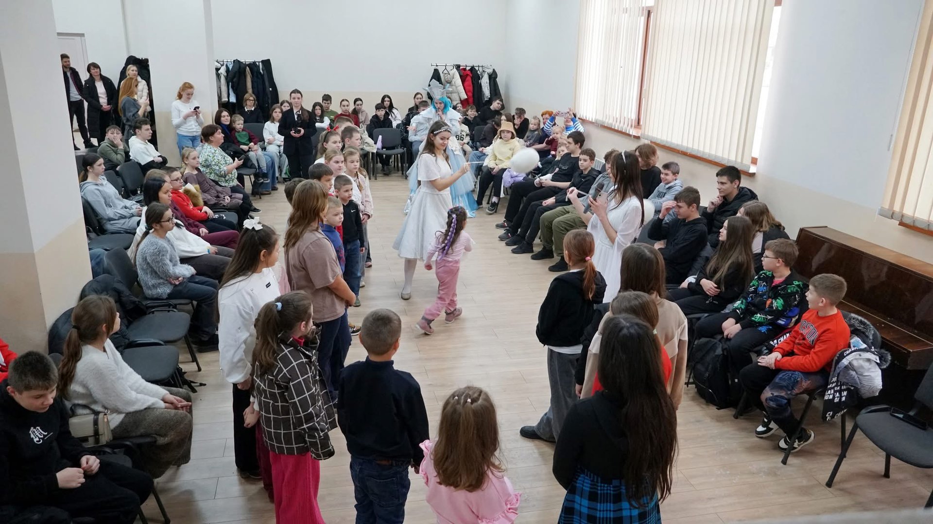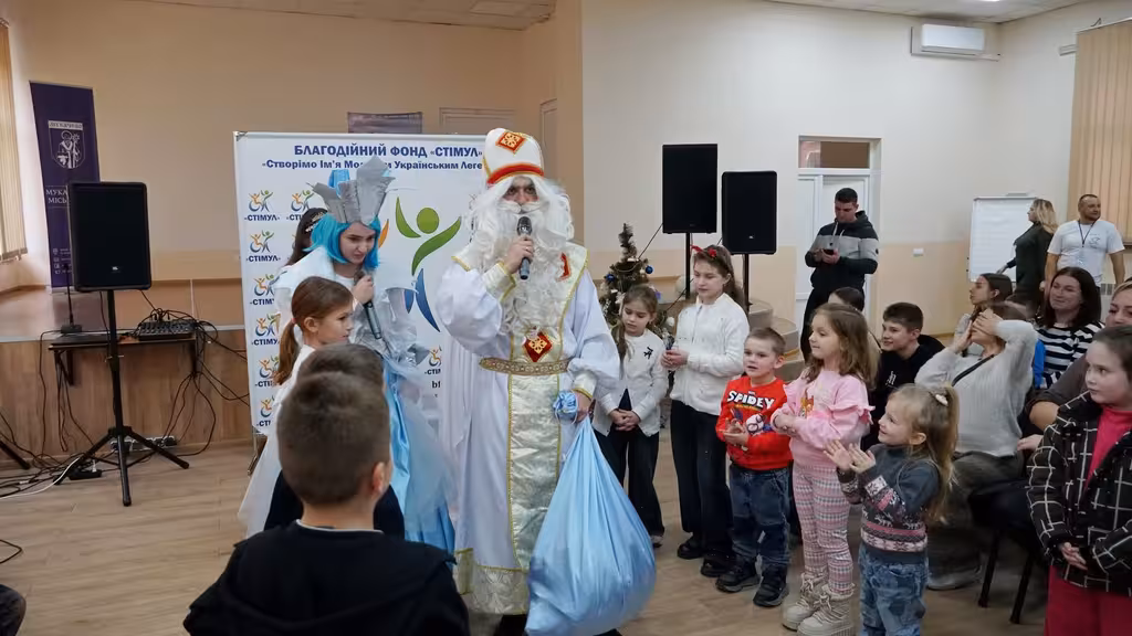 Для дітей підготували святкову програму з аніматорами, веселими танцями та піснями. Наприкінці заходу всі учасники отримали солодкі подарунки.