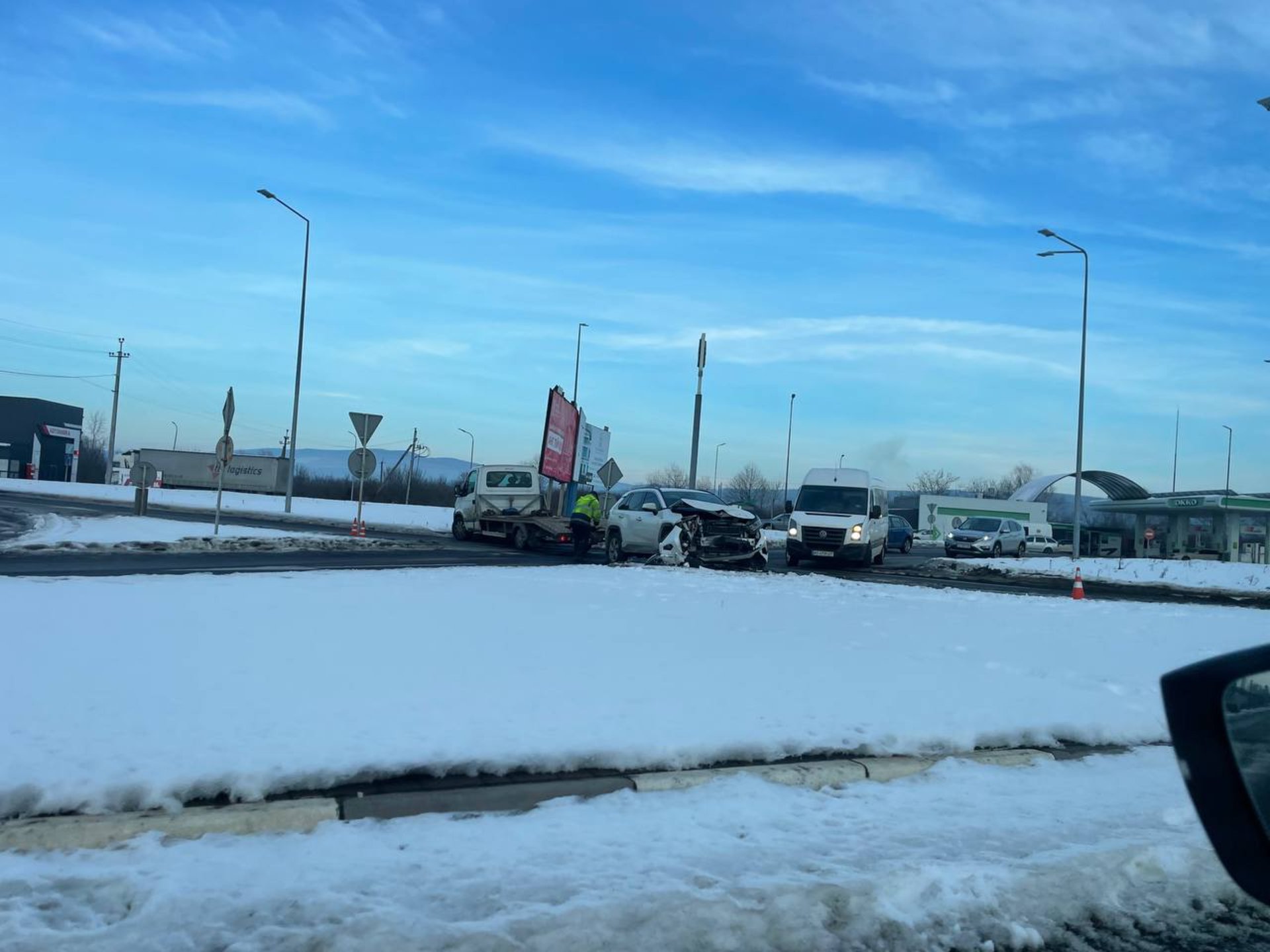 Сьогодні на виїзді з Ужгорода, на кільці, сталася ДТП за участю Toyota RAV4 та Fiat Doblо.