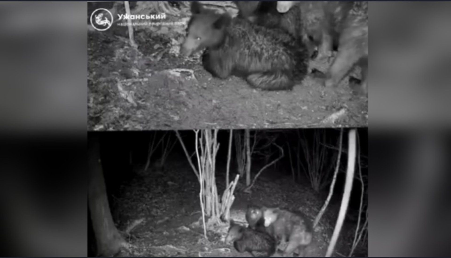 «Мати-ведмедиця і двоє щонайменше дворічних ведмежат ділять вечерю на трьох. З відео бачимо, яка зворушлива атмосфера турботи панує у цій хижій сімейці. З милою дитячою безпосередністю смакують знайдений корм», - йдеться у дописі парку.