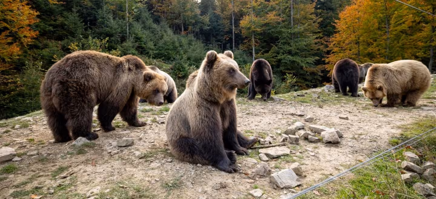 Початок жовтня цього року на Закарпатті видався холодним і дощовим — температура опускалася до +3°С, а в горах навіть випав перший сніг. Таке похолодання вплинуло і на мешканців Реабілітаційного центру бурих ведмедів у Синевирі.