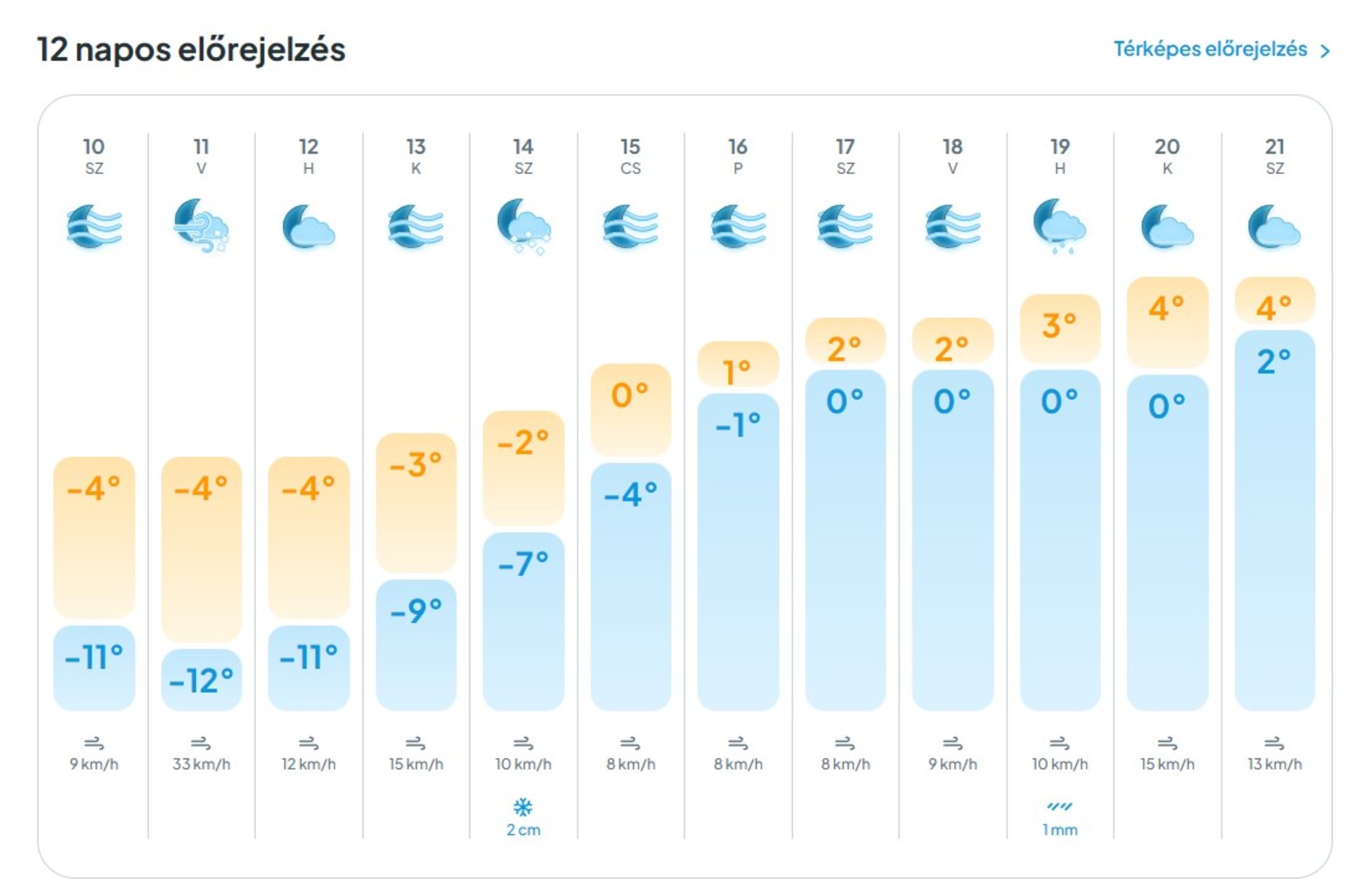 Температура вночі 10–15° морозу, на високогір’ї — до 17° морозу, вдень 7–12° морозу.