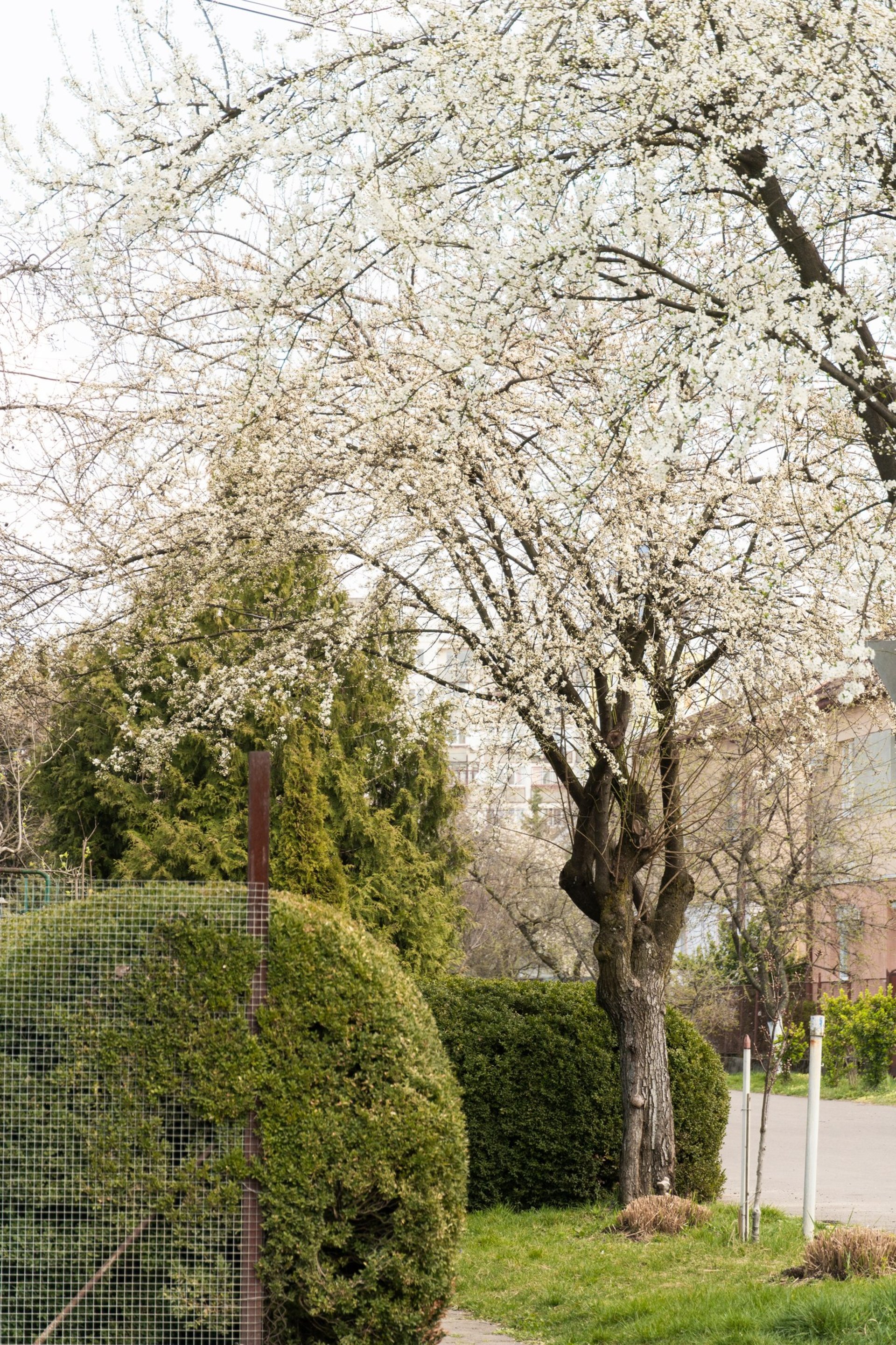 Згодом естафету підхопили дерева на вулиці Маргітича — там вулиця вже вкривається ніжно-рожевим цвітом.