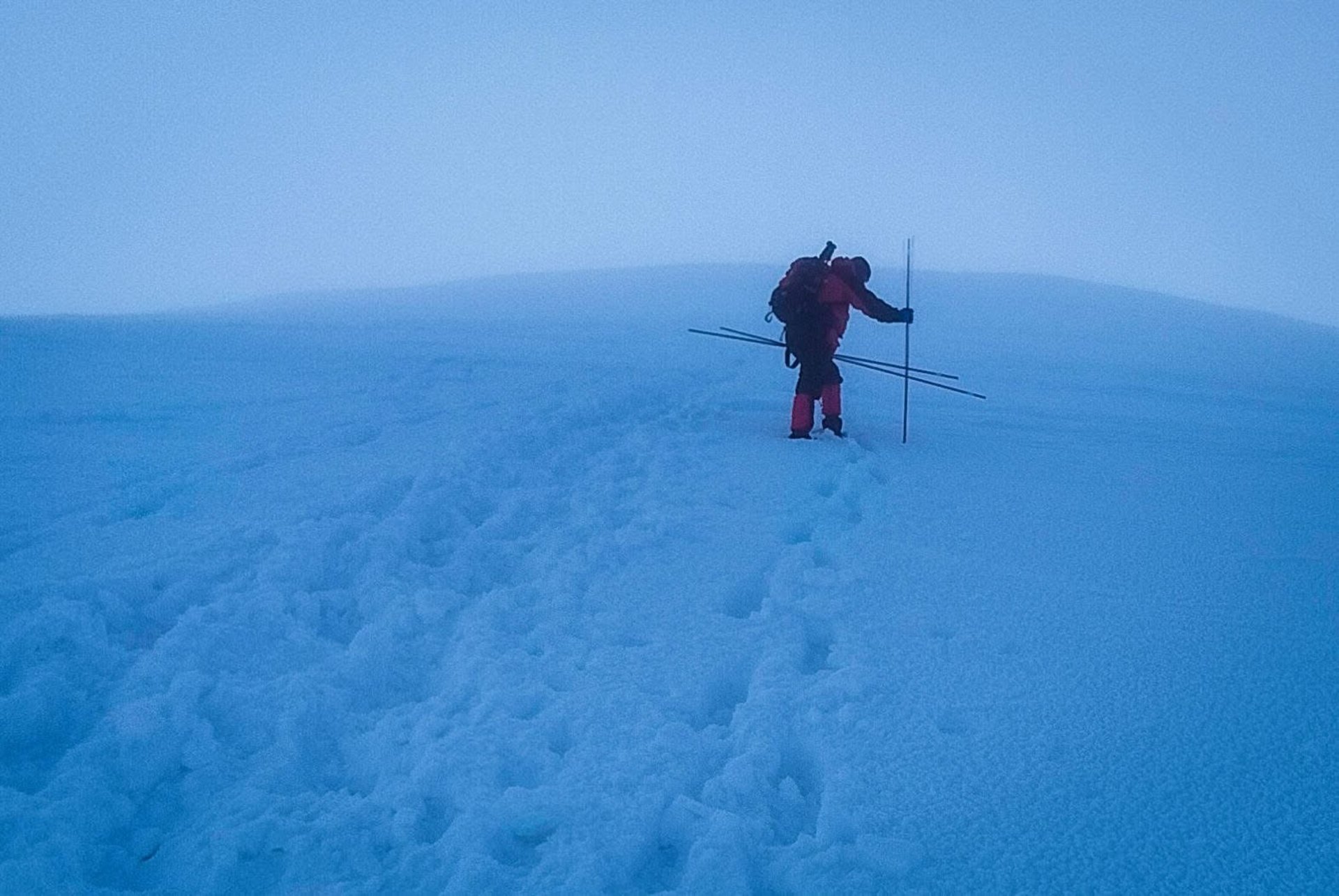 Зимовими стовпчиками промарковано верхню частину синього маршруту — від району Говерляни, вище кам’яного тура на висоті близько 1800 метрів, і до самої вершини.