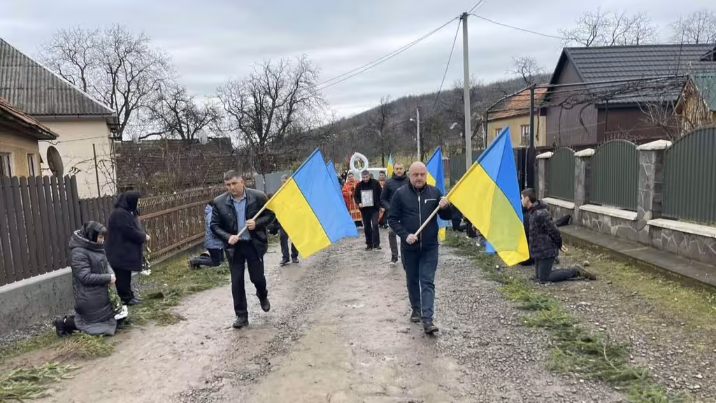 Люди навколішках провели захисника в останню дорогу. Під звуки Державного Гімну та військові почесті громада схилила голови в хвилині мовчання.