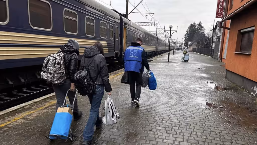 Днями на залізничному вокзалі у Мукачеві волонтери гуманітарної місії «Проліска» зустріли Ольгу та її доньку Жанну — родину, яка через війну була змушена тікати зі свого дому.