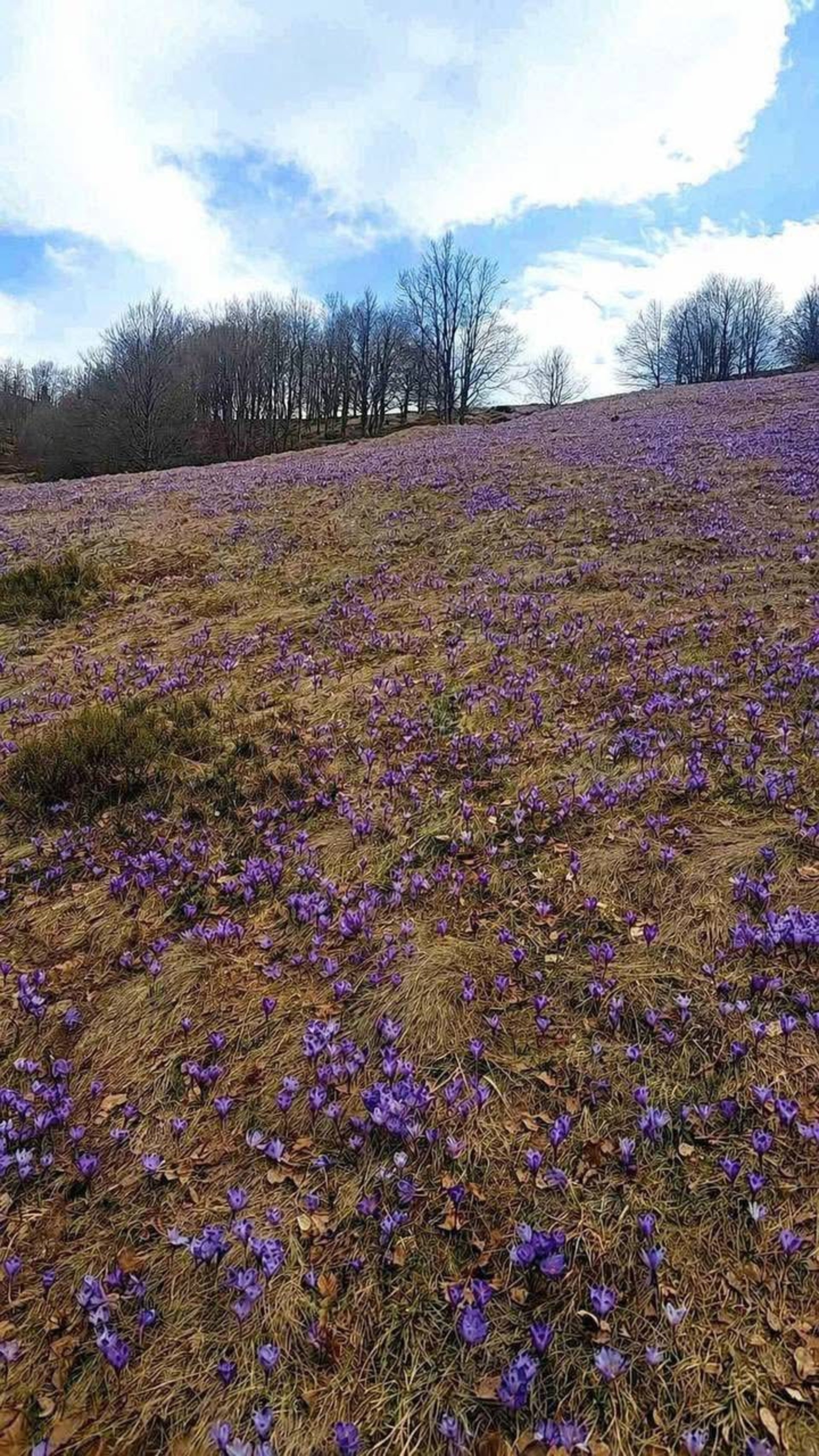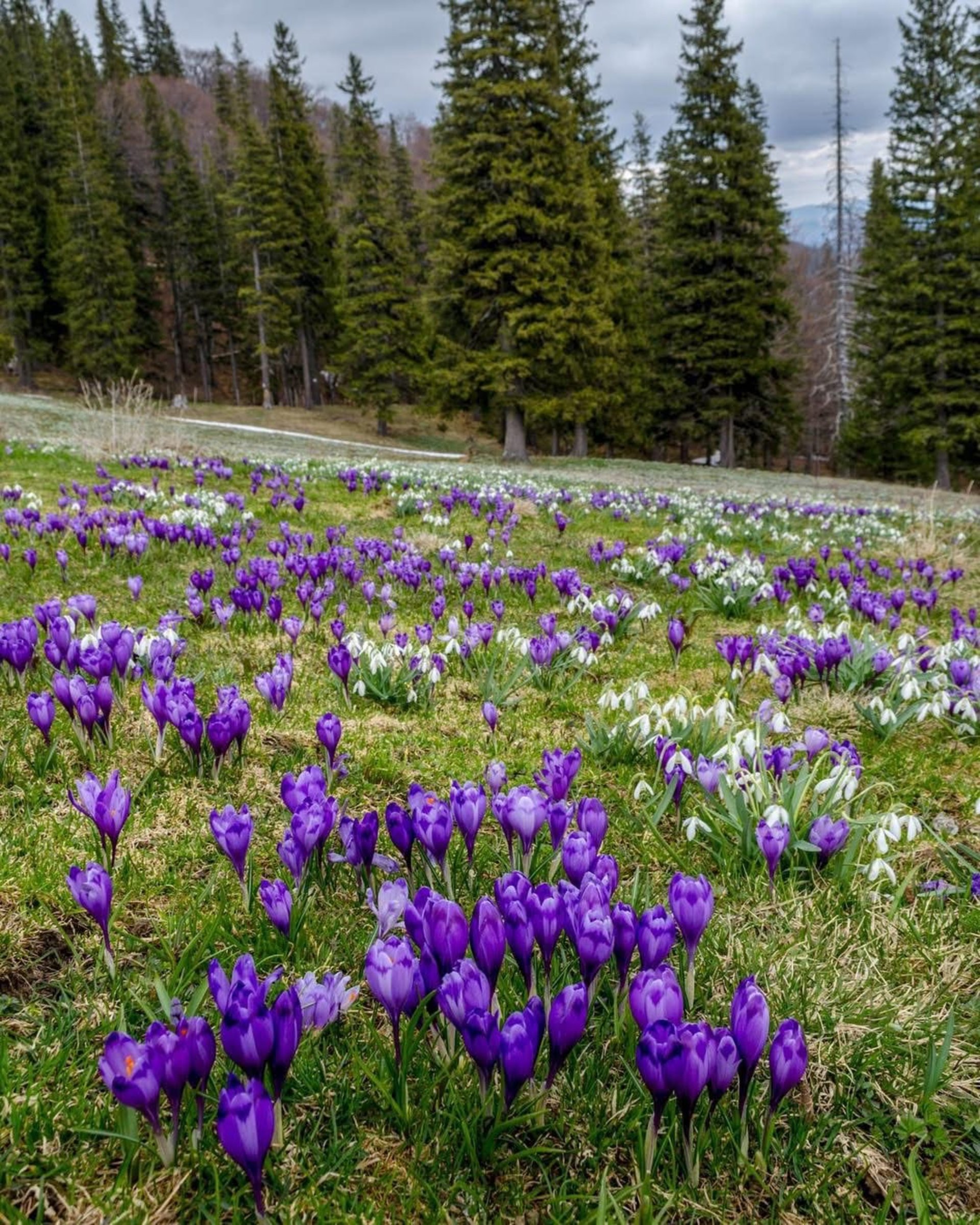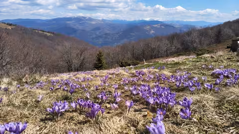 У високогірних районах Карпат почали квітнути шафрани Гейфеля. Масове цвітіння крокусів зараз можна побачити на полонині Красна та горі Терентин.
