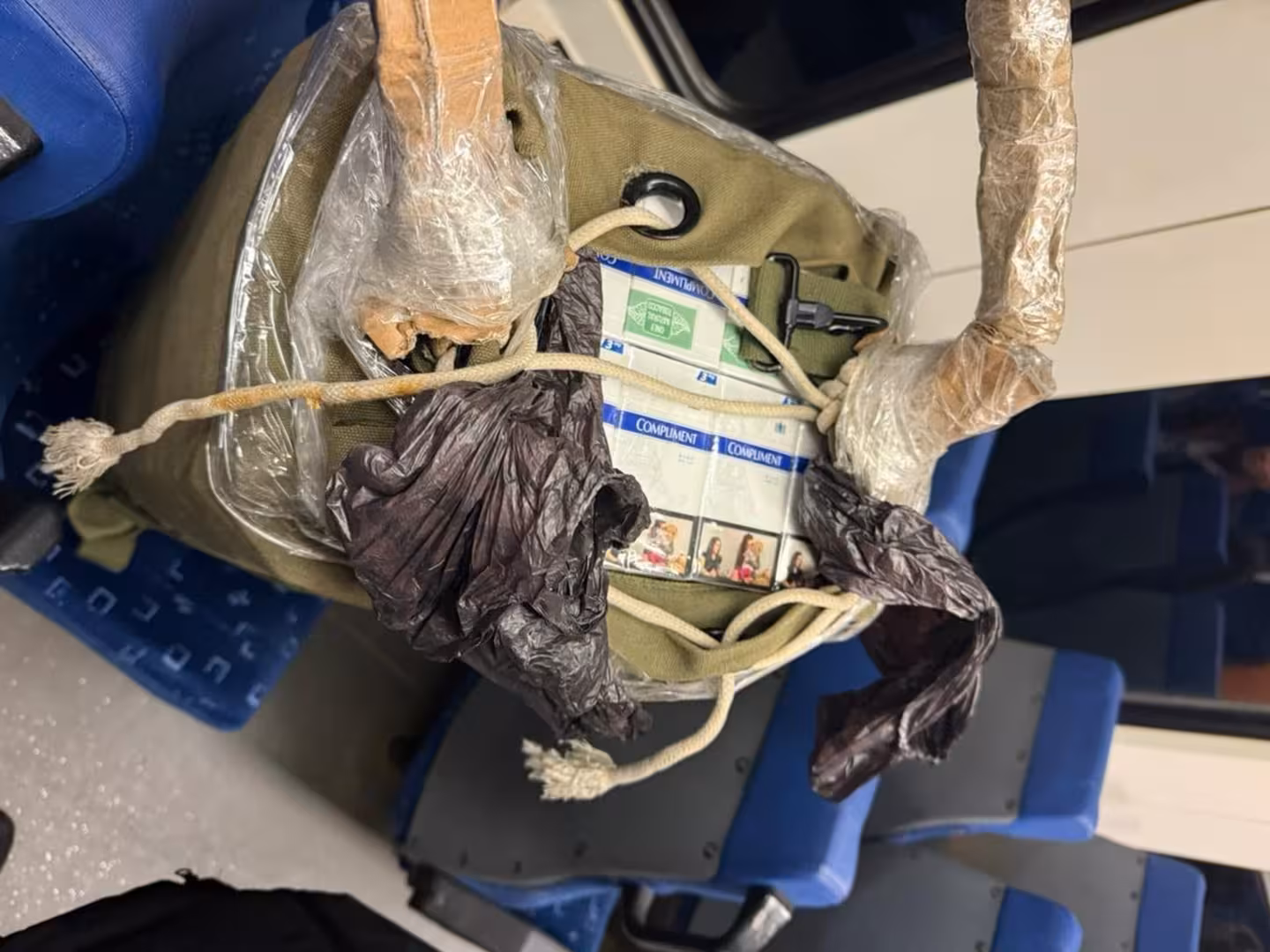 Під час супроводу поїзда митники зафіксували, як невідомі особи під час руху закинули сумки з безакцизними сигаретами у вагон, де їхала громадянка України. Саме вона мала переправити тютюнові вироби за кордон.