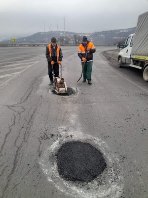 Наразі до виконання робіт залучили три бригади. Із 5 березня додатково працюватимуть ще дві одиниці спеціалізованої техніки для ліквідації ямковості струменевим методом.