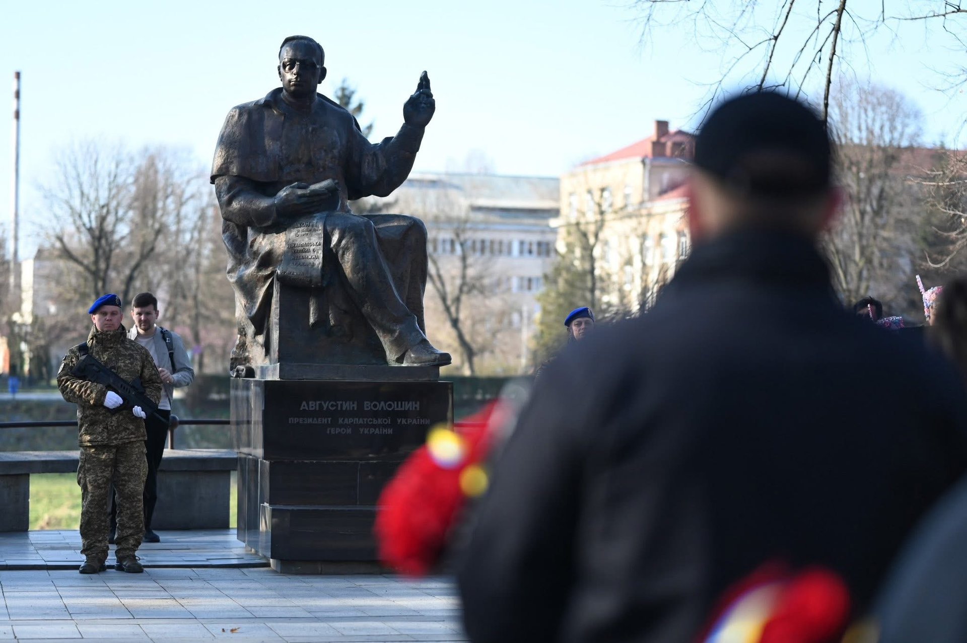 В Ужгороді на набережній Незалежності ветерани, військовослужбовці, духовенство, представники влади та громадськість поклали квіти до пам’ятника президенту Карпатської України Августину Волошину. Присутні хвилиною мовчання вшанували тих, хто творив історію краю у 1939 році, а також українських захисників, які загинули у війні за незалежність України, що триває з 2014 року.