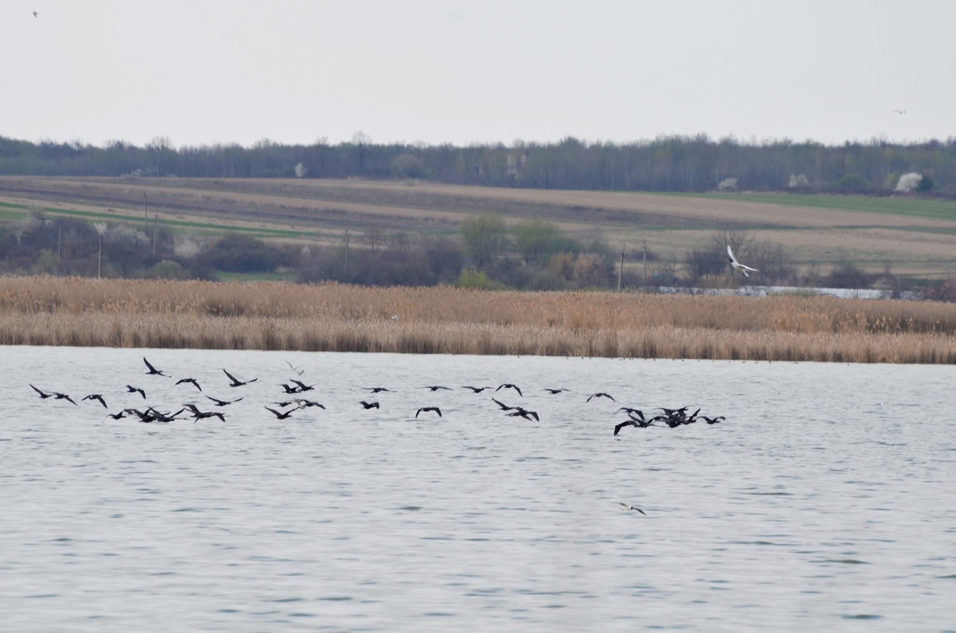 За спостереженнями екологів, група сірих журавлів перебуває на водоймі вже близько тижня. Водночас кількість косарів помітно зросла, а також вперше зафіксовано пару нерознів.