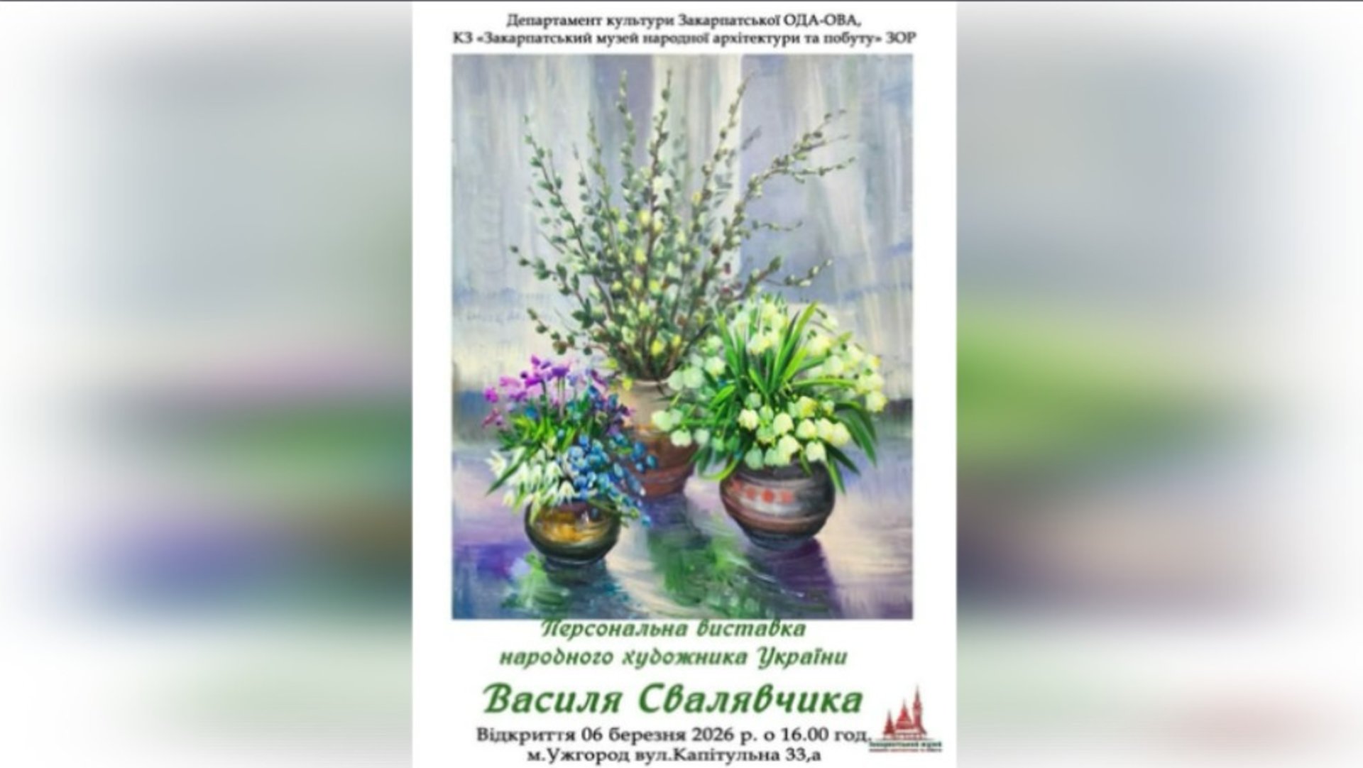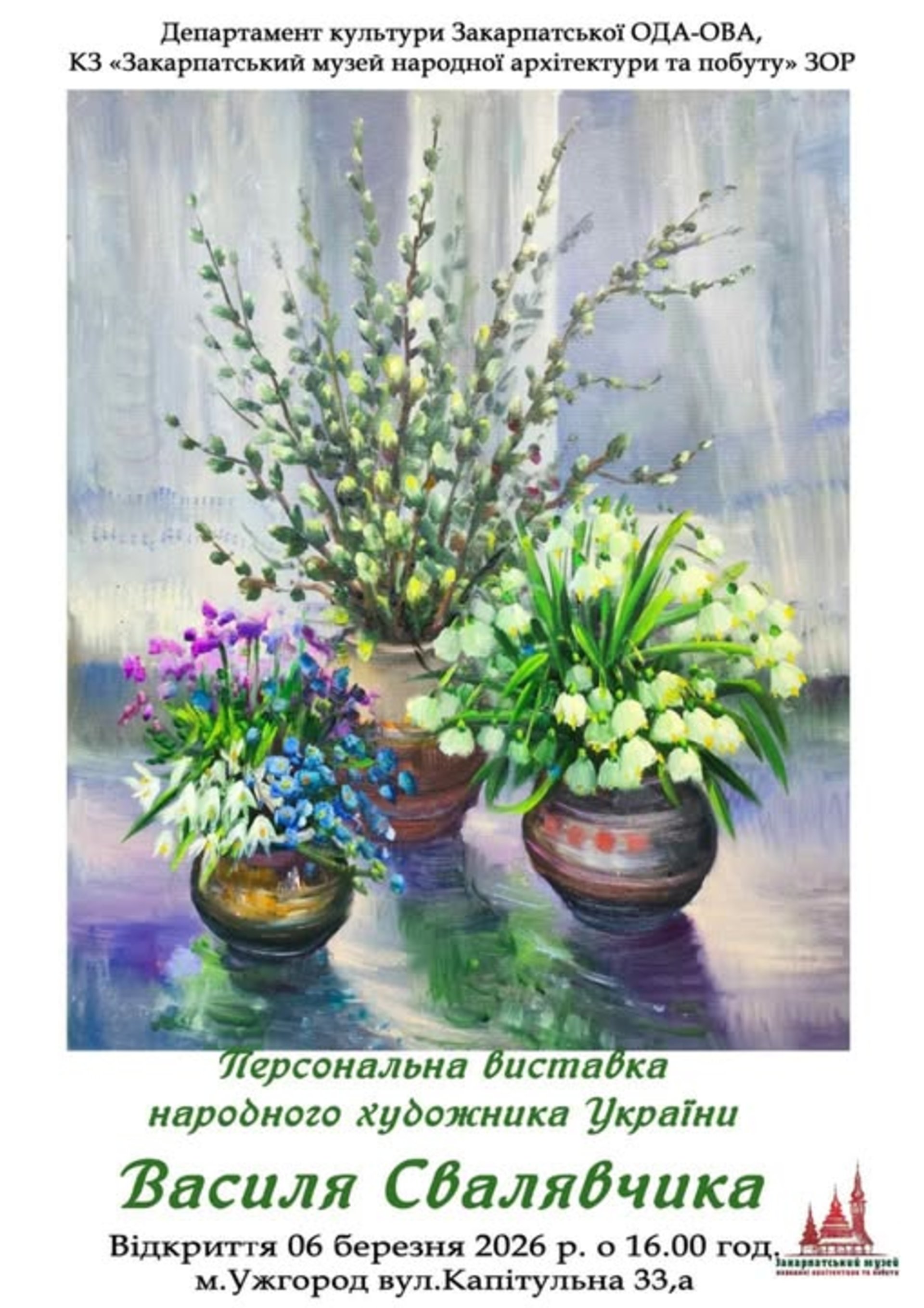 Відкриття відбудеться у п’ятницю, 6 березня, о 16:00 у великій виставковій залі музею за адресою: м. Ужгород, вул. Капітульна, 33а.