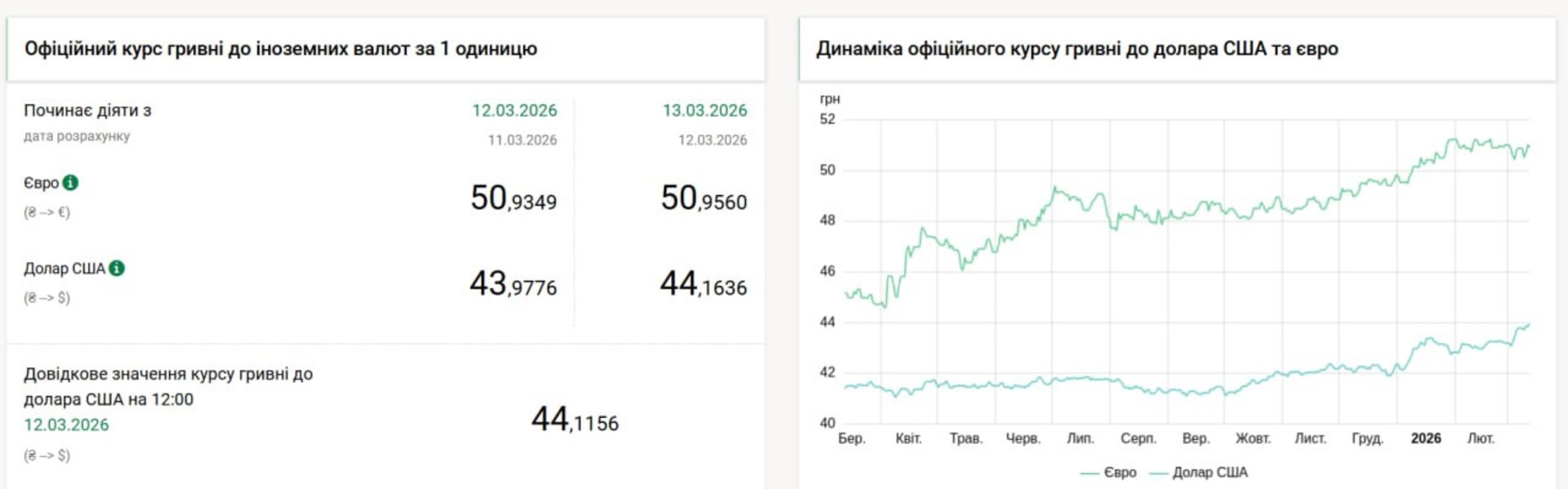 На 13 березня Нацбанк встановив курс на рівні 44,16 грн за долар.