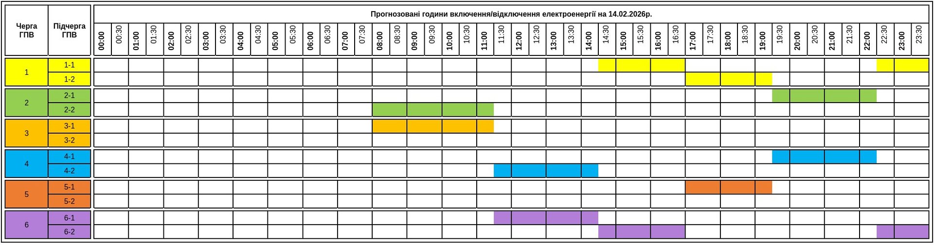 Графік погодинних відключень електроенергії на 14 лютого