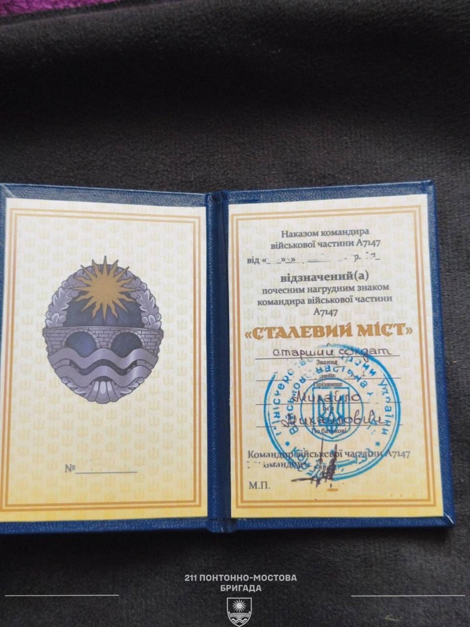 Він служить у 211 понтонно-мостовій бригаді на посаді механіка-водія і несе відповідальність за важливі завдання на передовій, борючись за нашу свободу та безпеку. А його відвага і самопожертва – є прикладом для багатьох.