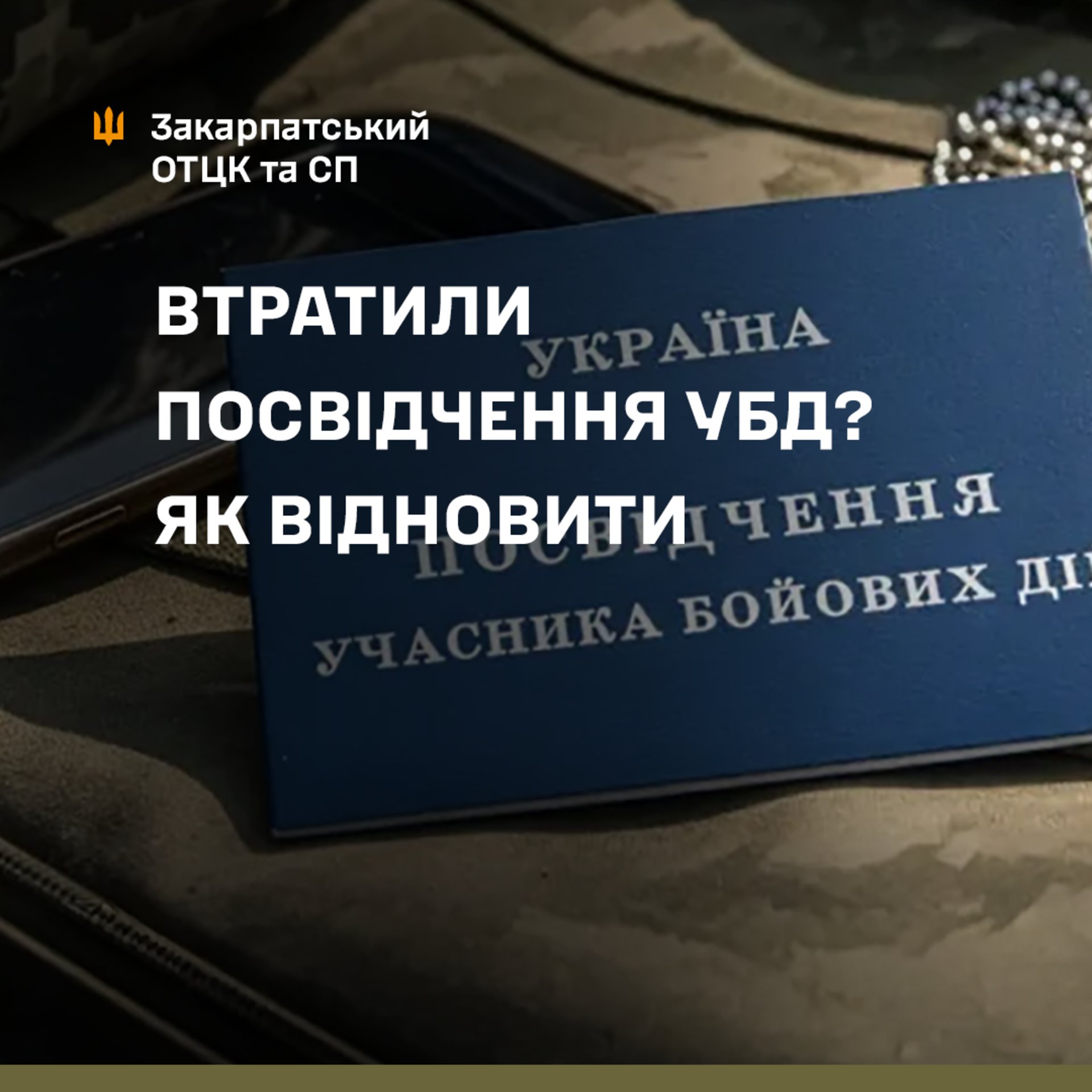 Для отримання нового посвідчення УБД чинним військовослужбовцям необхідно подати рапорт на командира військової частини, а звільненим з військової служби – звернутися до ТЦК та СП, в якому вони перебувають на обліку.