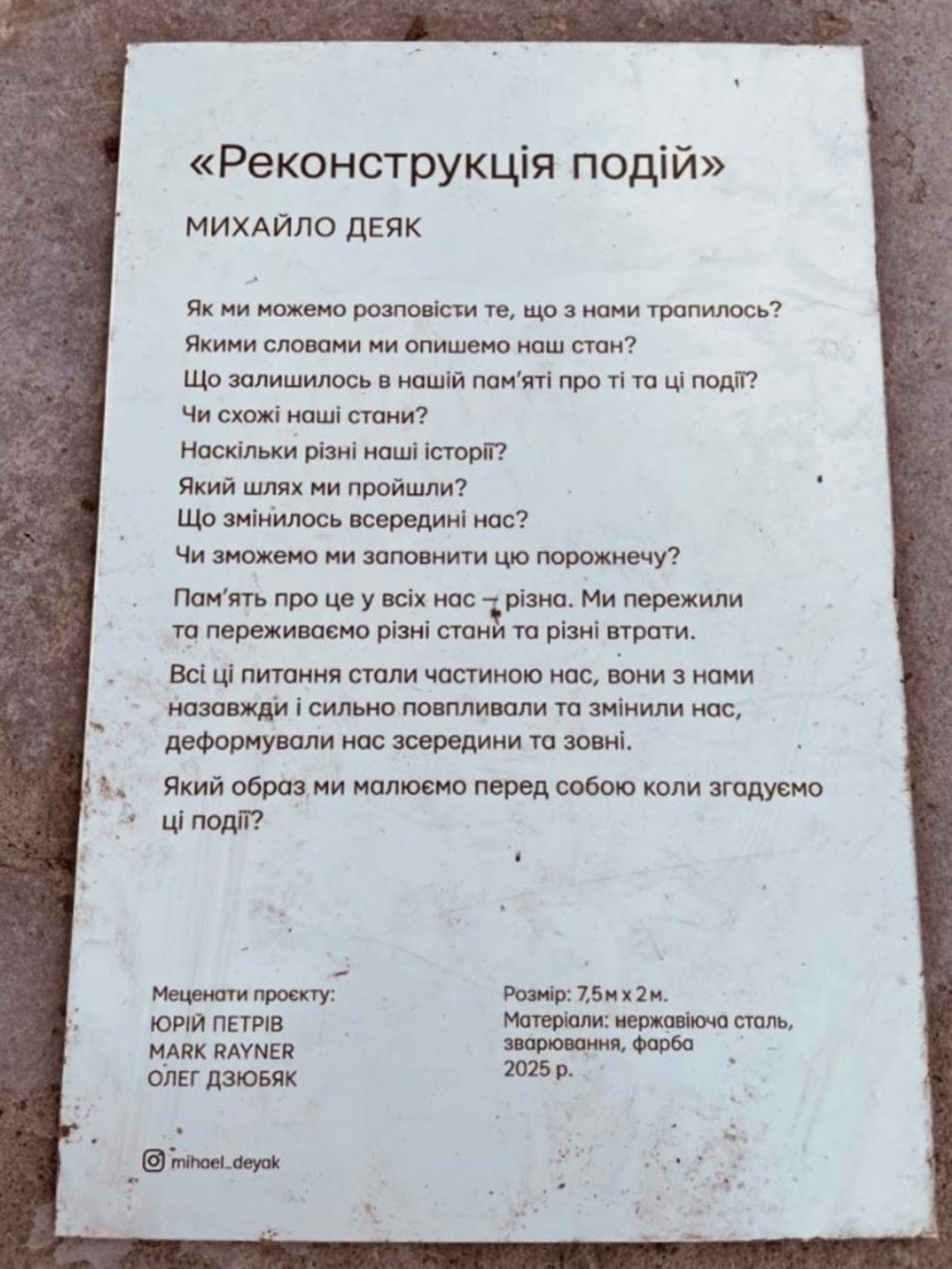 Михайло Деяк — художник родом із Закарпаття. Він працює на перетині неоекспресіонізму та мінімалізму, експериментує з матеріалами, зокрема зі склом і металом, та бере участь у виставках в Україні й за кордоном.