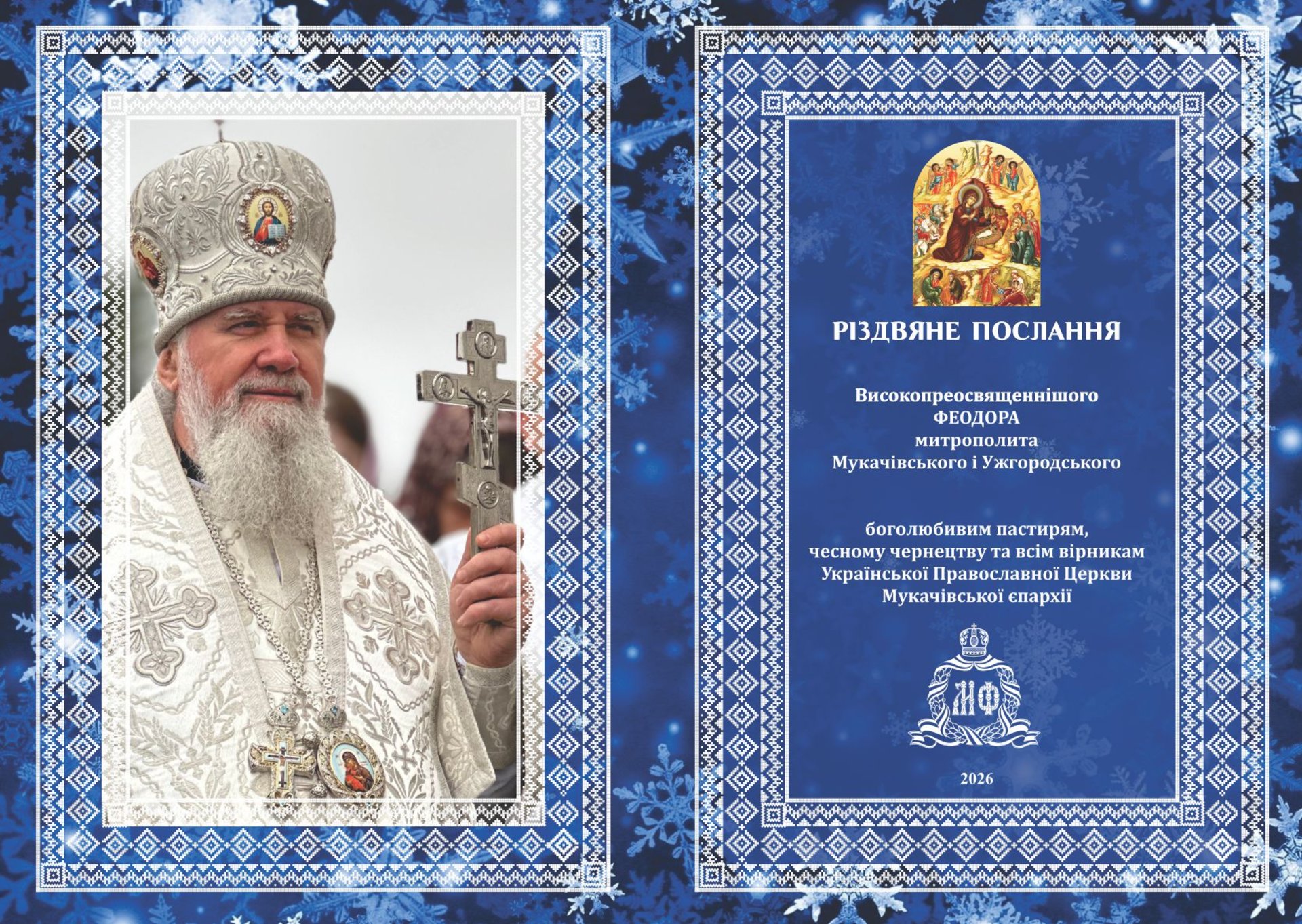 Високопреосвященніший Феодор, митрополит Мукачівський і Ужгородський, звернувся з різдвяним посланням до духовенства, чернецтва та всіх вірників Української Православної Церкви Мукачівської єпархії.
