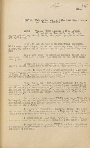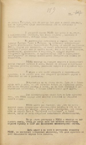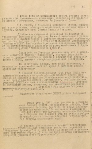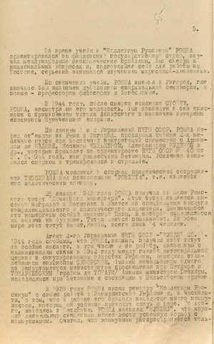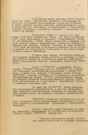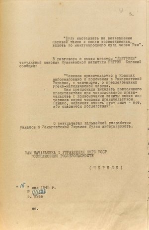 У документі йдеться про те, що органи нкдб урср відстежили канали зв’язку Т. Ромжі з Ватиканом. Зокрема, на залізничній станції Чоп перехопили особистого секретаря єпископа і казначея капітули. Один їхав до Риму з доповіддю Т. Ромжі про ситуацію, яка склалася у Закарпатській Україні, й утиски греко-католицької церкви, інший – до словацького міста Пряшева, де нібито мав оселитися на постійне мешкання й організувати канал для інформування Ватикану про розгортання подій в Ужгороді.