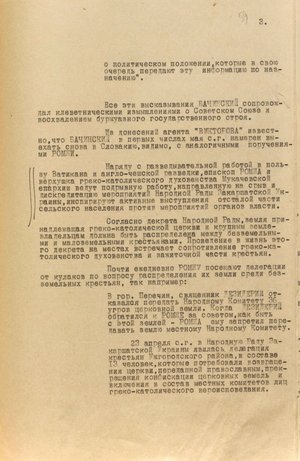 У документах, які нкдб урср надсилало М. Хрущову, П. Фітіну і В. Меркулову, цілеспрямовано нагніталася обстановка. Повідомлялося про контакти греко-католицьких священників із підпіллям ОУН, яке діяло в Карпатах, про те, що «в уніатському монастирі ордена “Василіанів”, який розташований поряд із греко-католицьким храмом і безпосередньо підпорядковується Ромжі, є незареєстрована друкарня». Ще одну друкарню нібито мала нелегальна організація чехофілів, яка спиралася на греко-католицьке духовенство, а фінансувалася ця діяльність британською розвідкою. В іншому повідомленні йшлося про те, що «за агентурними відомостями, які потребують уточнення, в катакомбах греко-католицького храму в Ужгороді має зберігатися радіостанція» (ГДА СЗРУ. – Ф. 1. – Спр. 4160. – Т. 1. – Арк. 54).