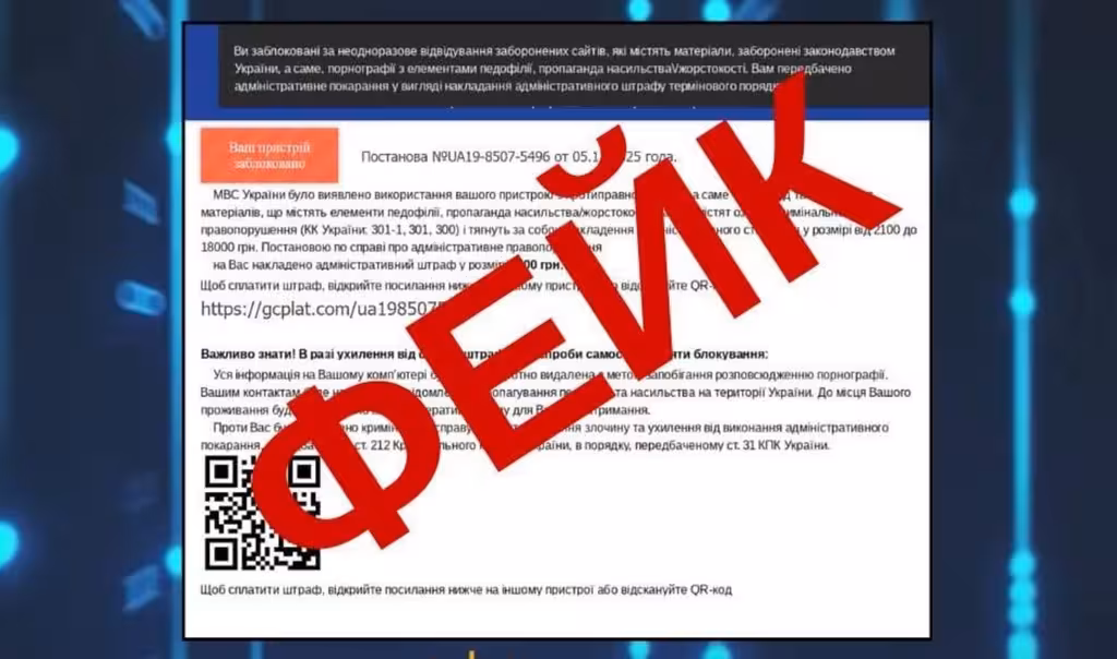 Зловмисники надсилають неправдиві повідомлення про «блокування комп’ютера» та вимагають оплатити вигаданий штраф.