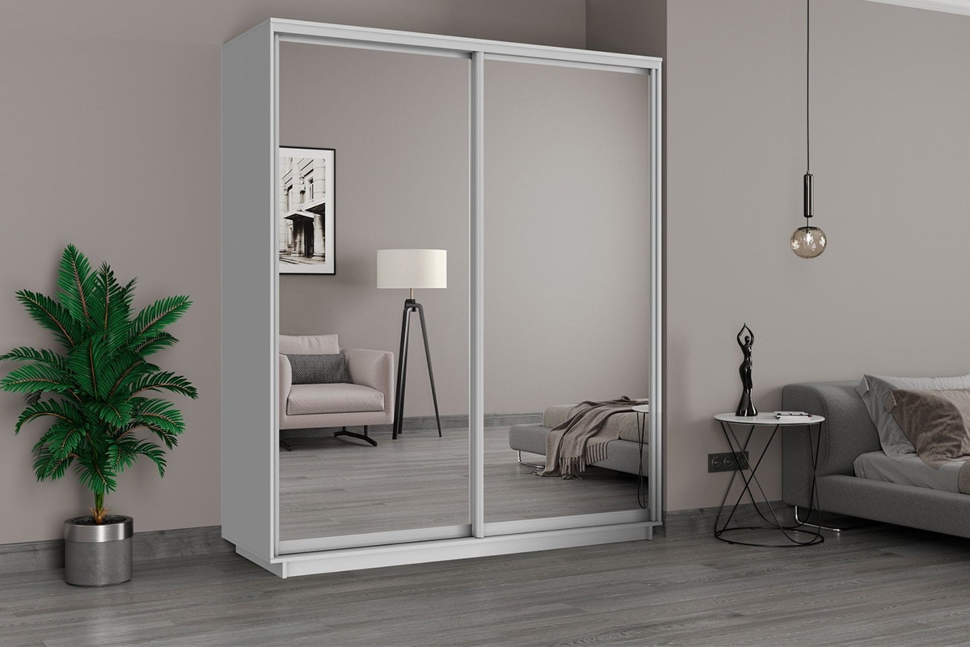 Шафа з дзеркалом додає світла й візуально розширює кімнату. Вона може замінити окреме дзеркало та допомагає зекономити місце. Це особливо актуально у вузьких спальнях або кімнатах із недостатнім природним освітленням. Важливий нюанс: якщо в домі є діти або ви не хочете часто витирати відбитки, краще обрати комбінований фасад або захисне покриття. Так зовнішній вигляд довше залишатиметься охайним.