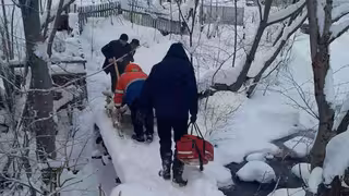 До 71-річного пацієнта з тривалою носовою кровотечею та підозрою на пневмонію медики добиралися пішки через засніжену місцевість. У важкому стані пацієнта транспортували санчатами до автомобіля швидкої допомоги.