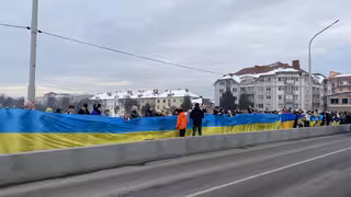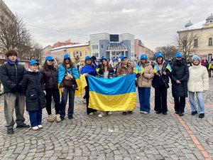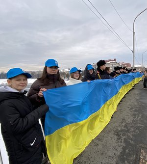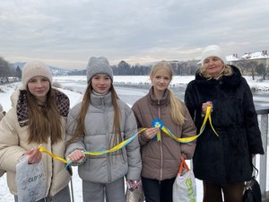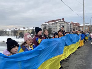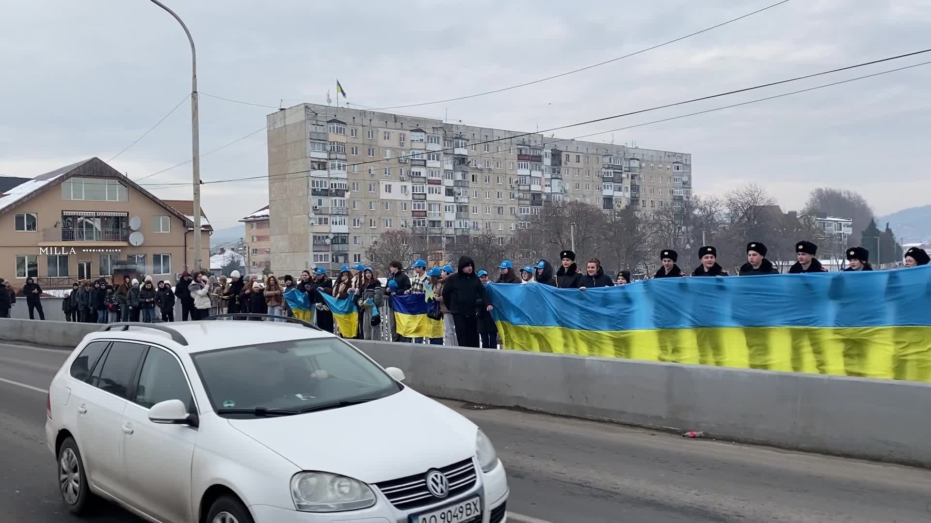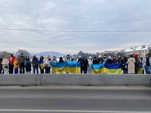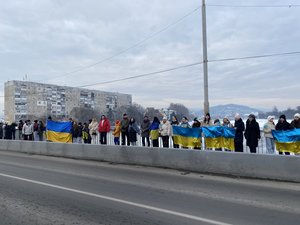 На центральному мості через річку Латориця утворили ланцюг єднання та розгорнули Прапор України. Понад сотня присутніх разом заспівали Державний Гімн України.