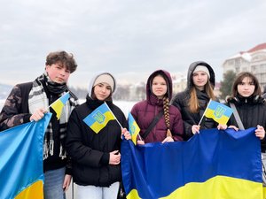 Понад сотня людей розгорнули Державний Прапор України та разом заспівали Державний Гімн.