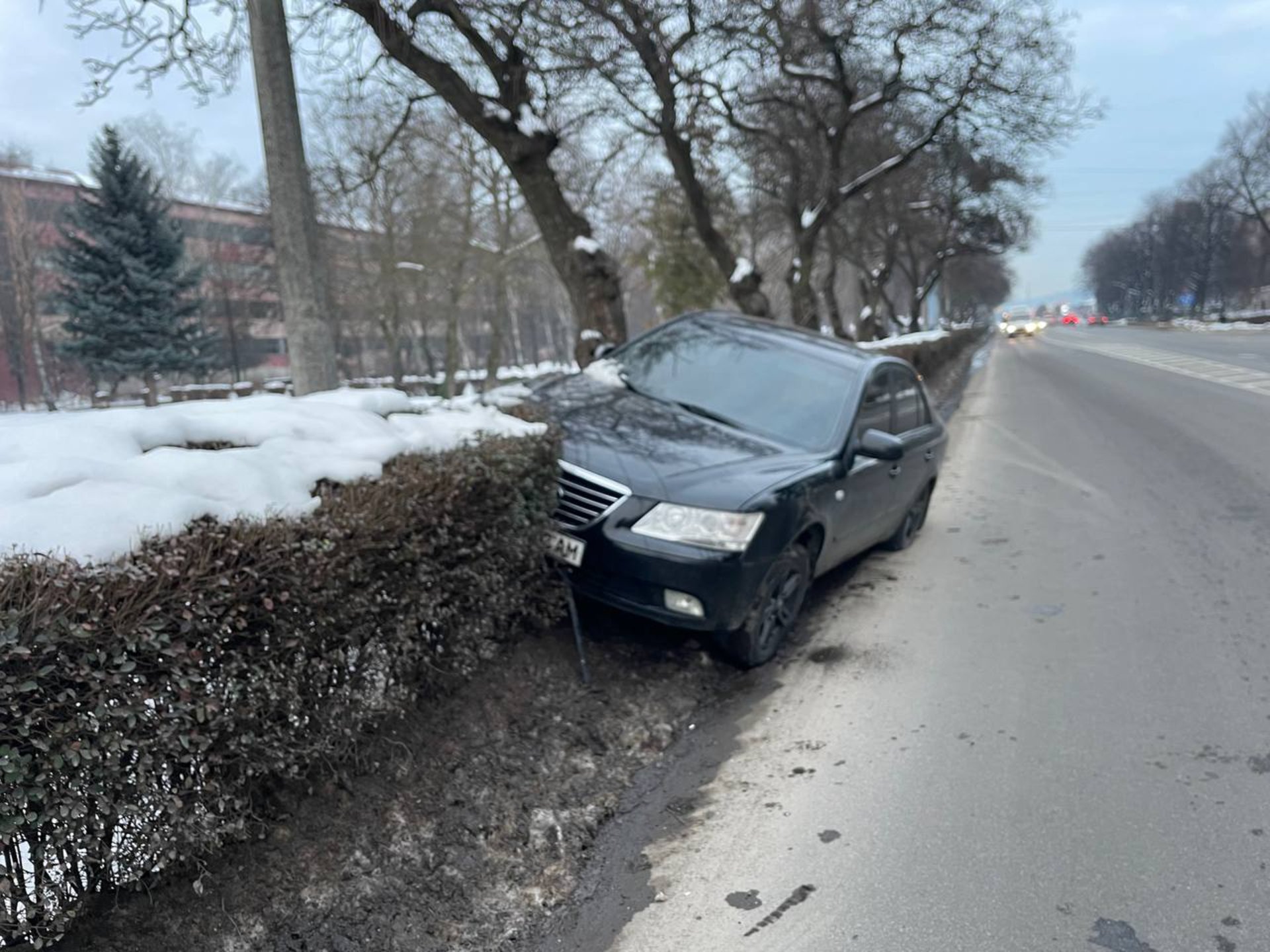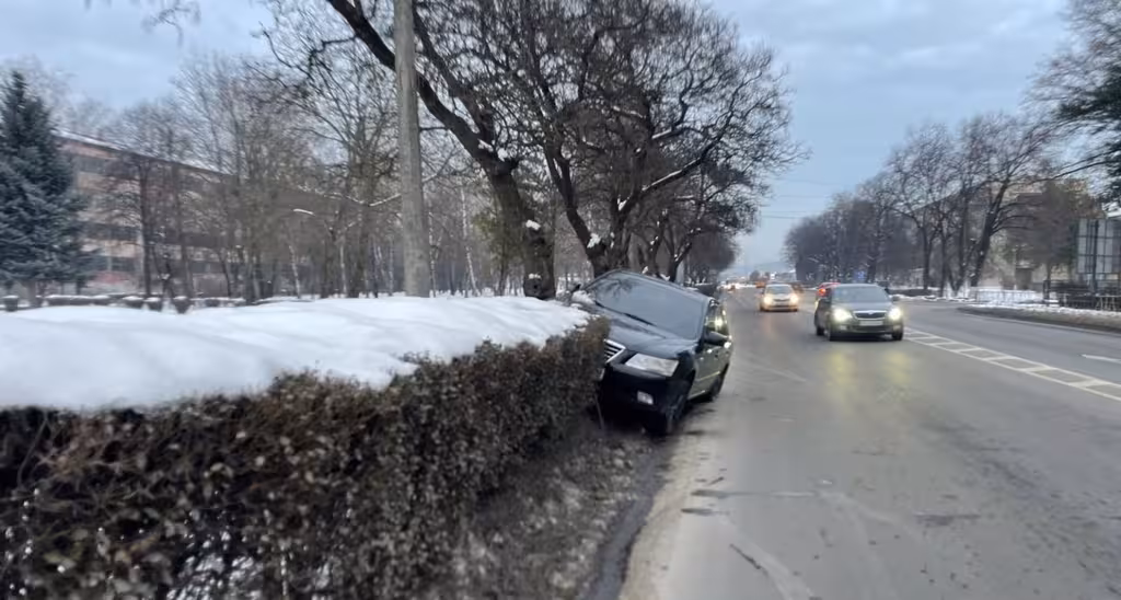 У Мукачеві на вулиці Томаша Масарика очевидці помітили легковий автомобіль, який частково з’їхав з проїжджої частини та застряг у кущах уздовж дороги.