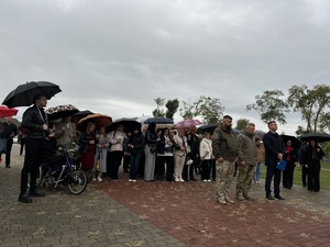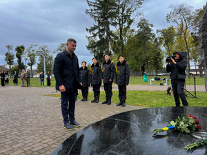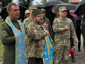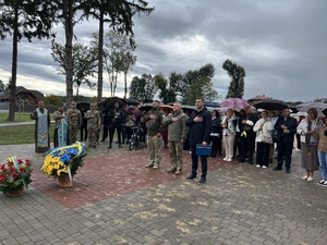 Військові, капелани, міська влада та жителі громади прийшли у Меморіальний парк по вулиці Духновича, аби віддати шану полеглим захисникам та подякувати воїнам, які продовжують обороняти Україну.