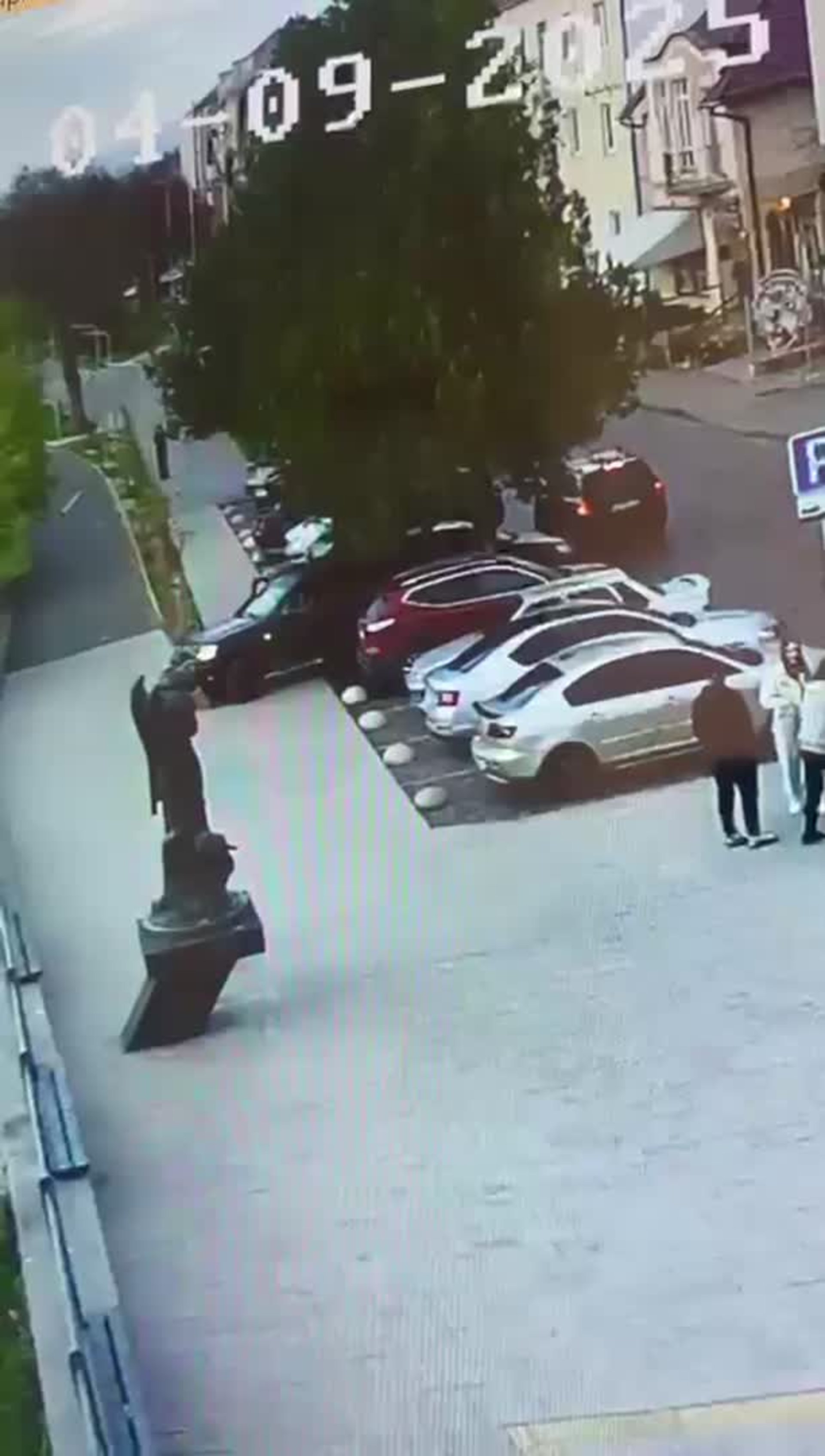 По вулиці Парканія у Мукачеві водійка позашляховика пошкодила електроопору. Інцидент трапився неподалік скульптури «Рік біди і повені».