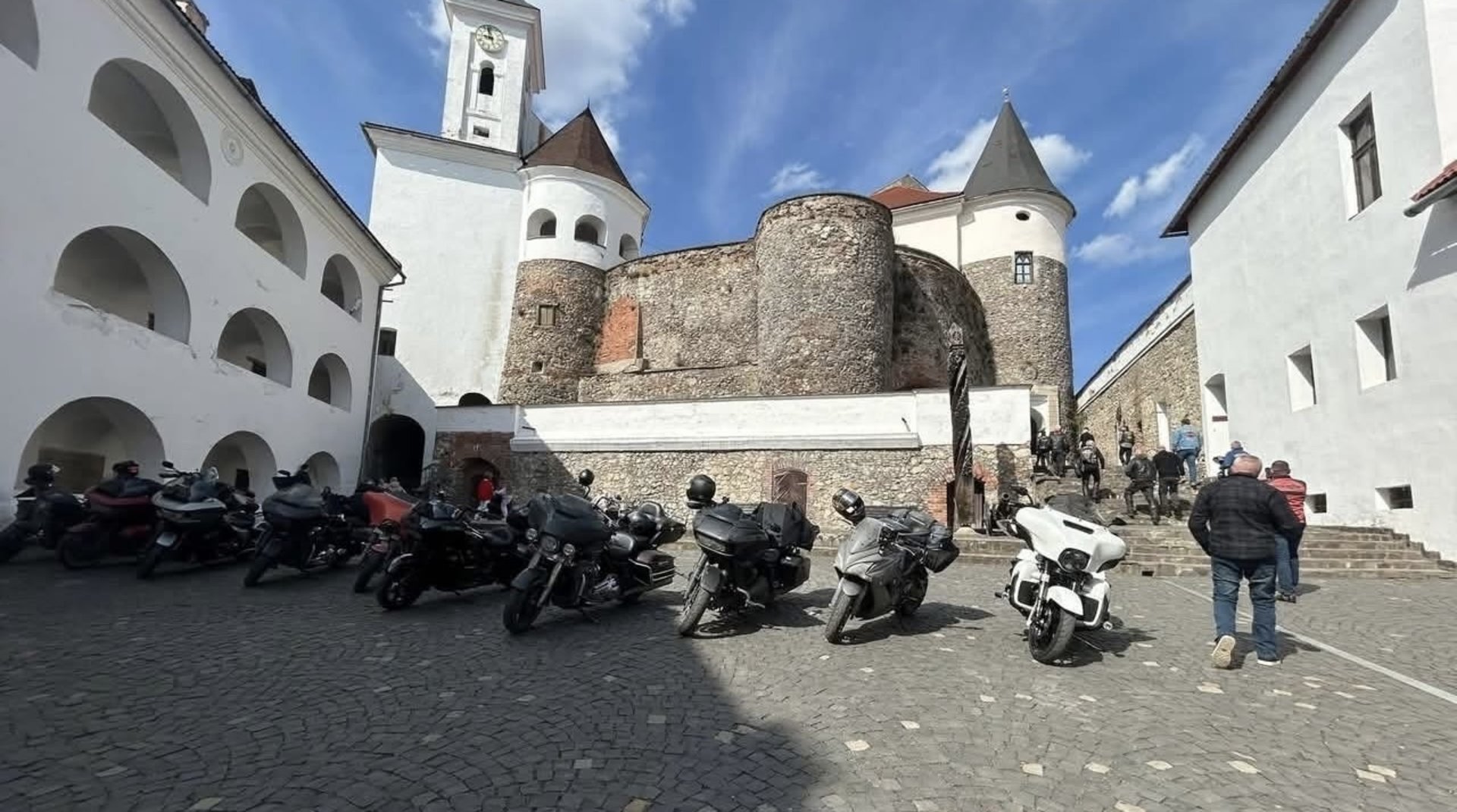 До замку «Паланок» у Мукачеві завітали байкери з Франції та України, які подорожують територією країни. Серед їхнього транспорту були відомі мотоцикли марки Harley-Davidson.