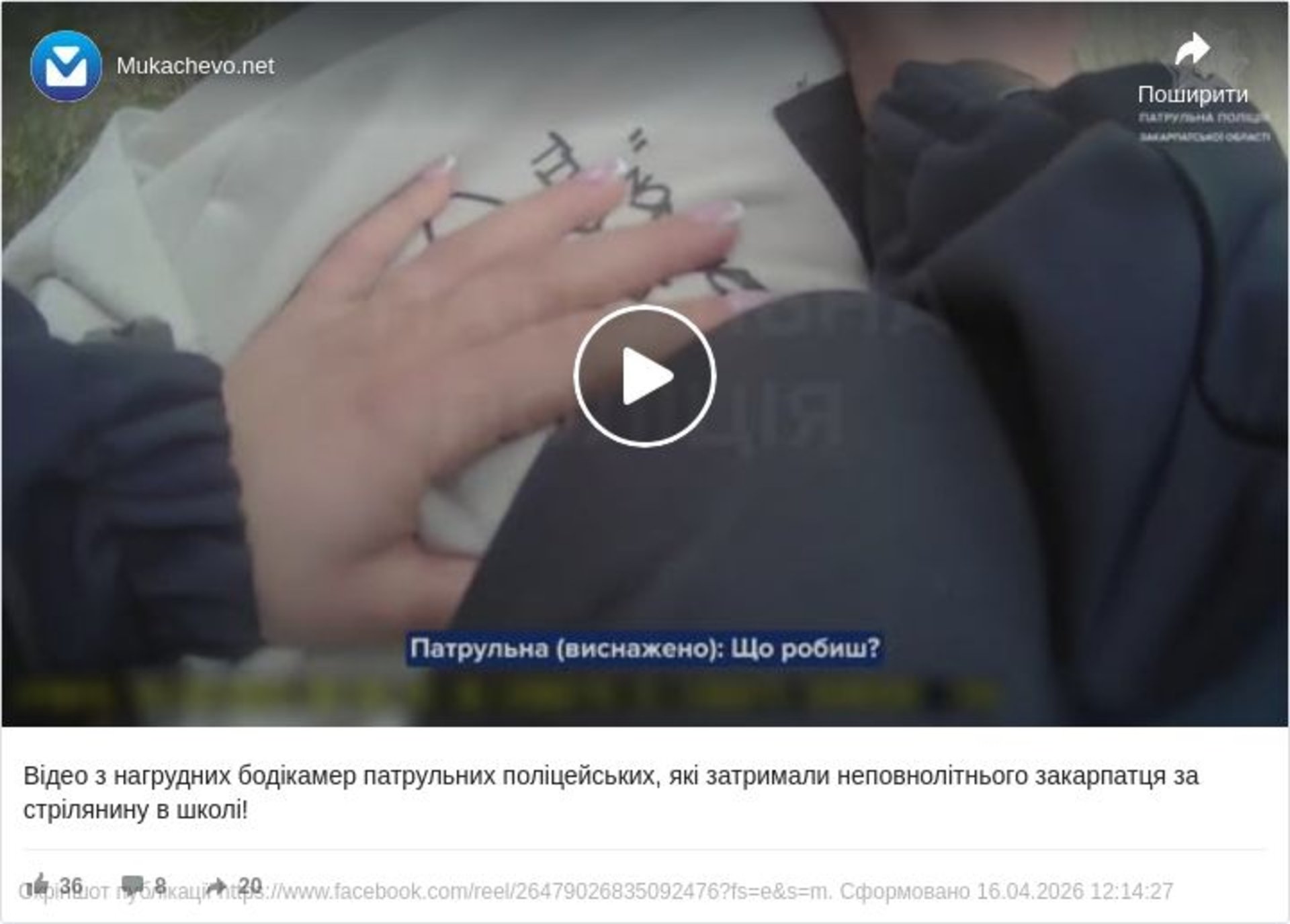 Відразу після пострілу школяр намагався втекти, проте його затримали патрульні, які виявили підлітка на території навчального закладу.