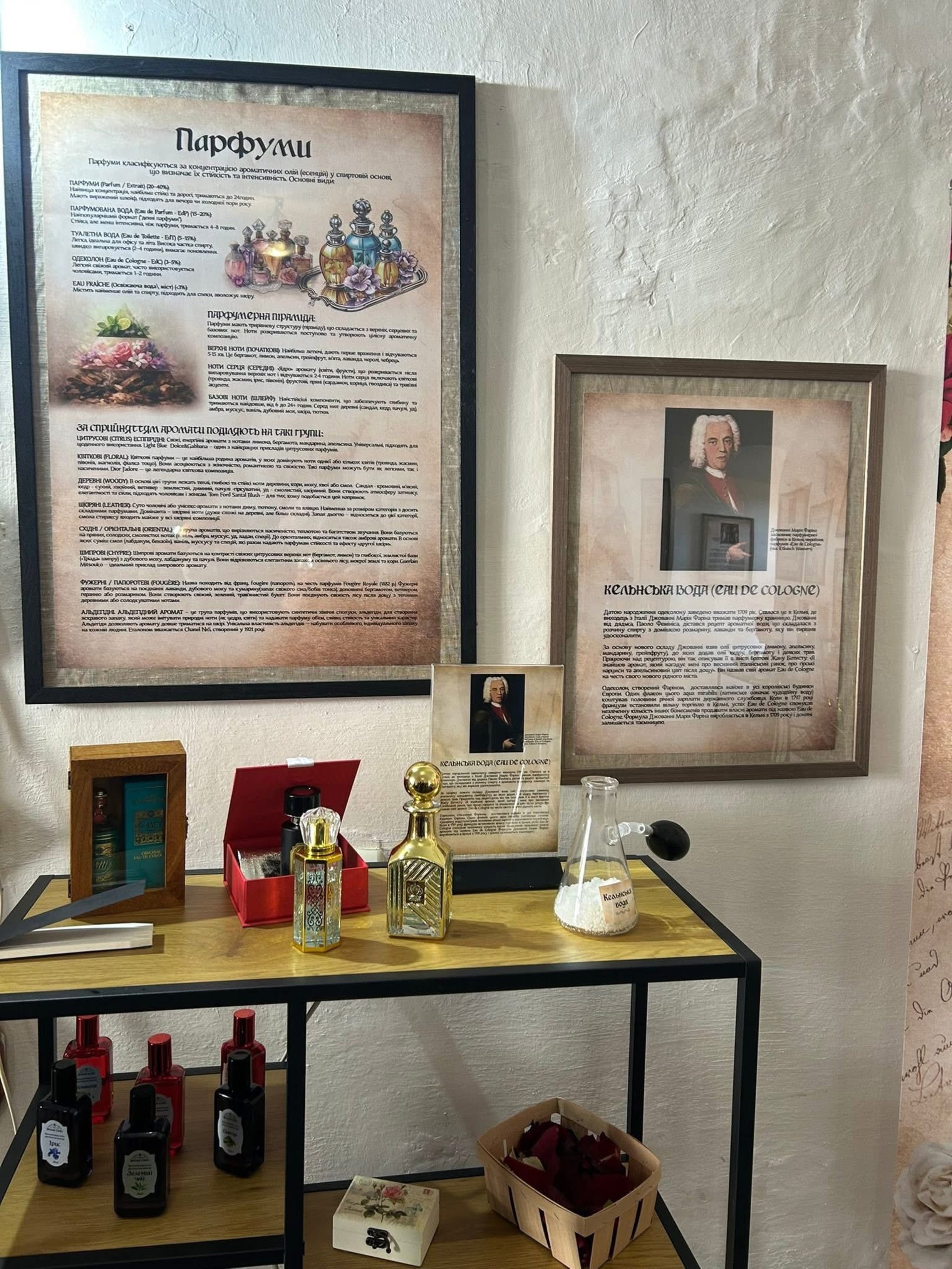 Відвідувачі можуть ознайомитися з історією та описами європейських ароматів, дізнатися про традиції парфумерного мистецтва Середньовіччя та відчути багатогранність класичних ароматичних композицій.