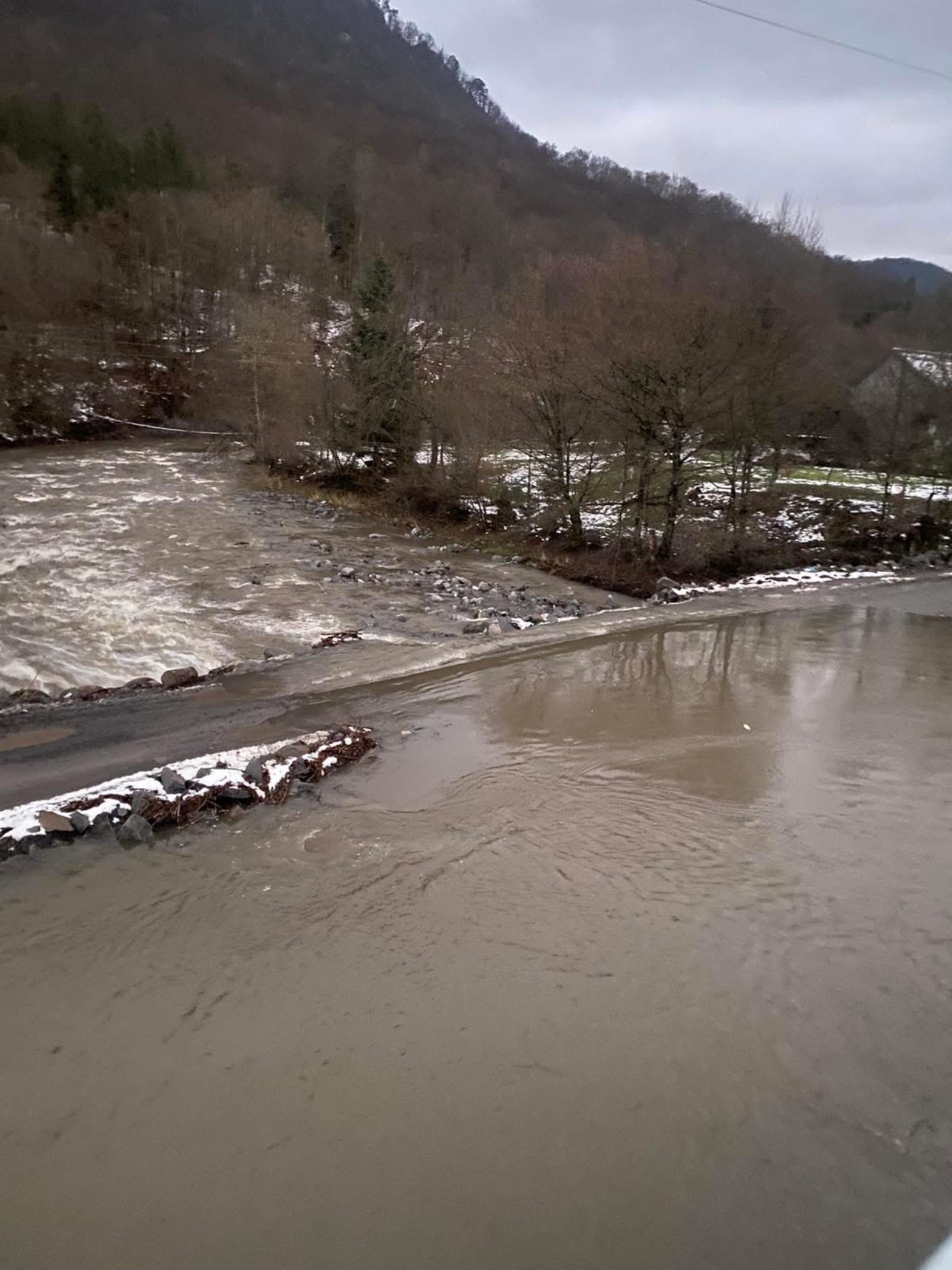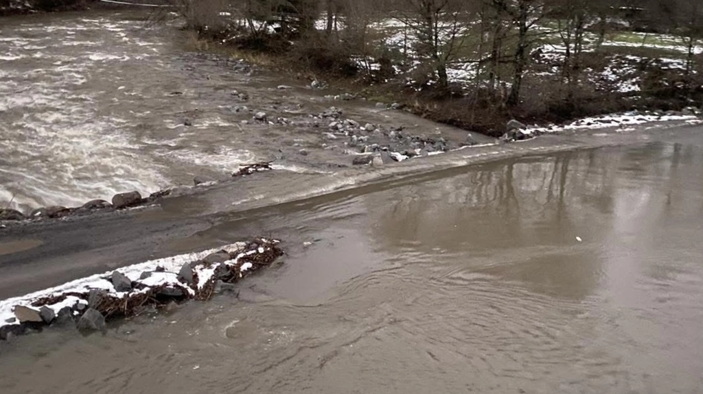 Через активне танення снігу різко зріс рівень води в річці Жденівці, що зробило тимчасову переправу небезпечною для проїзду.