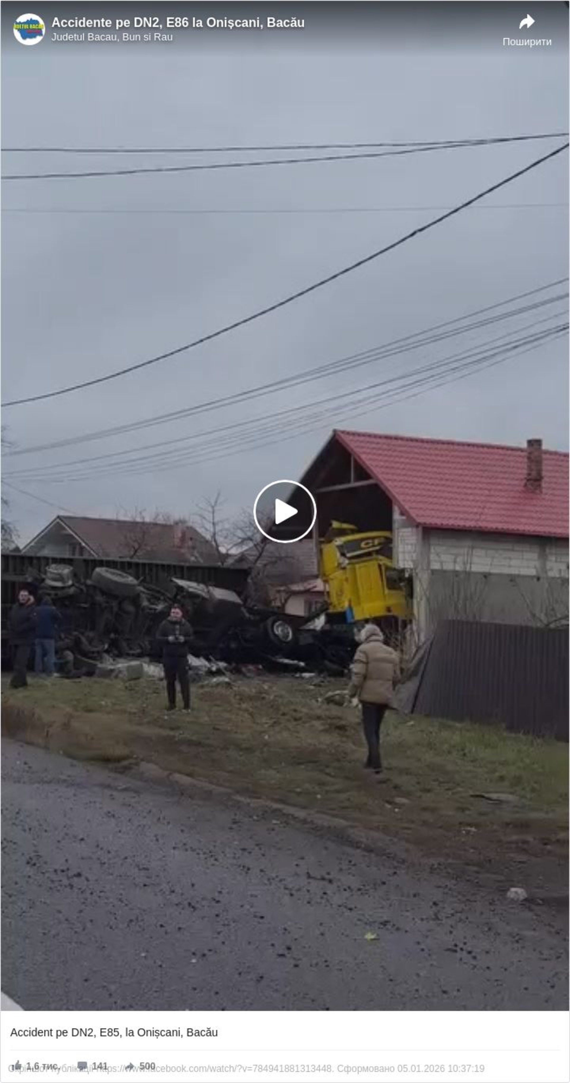 У неділю 4 січня в румунському селі Онішкань (жудець Бакеу) вантажівка з причепом з українськими номерними знаками врізалася прямо в житловий будинок, завдавши значних пошкоджень конструкції.