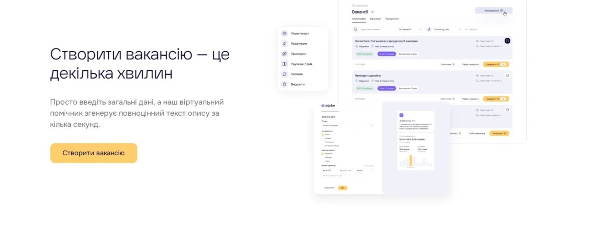 Одразу при реєстрації на сайті ви зможете потрапити в один з кабінетів - або роботодавця, або роботовзявця. Вони доступні на одному обліковому записі, тож декілька акаунтів створювати не потрібно. До того ж роботодавець може надати певні права і доступ своїм співробітникам-рекрутерам або ейчару, і вони всі можуть користуватись одним обліковим записом компанії та виконувати кожен свої функції, працюючи з певними напрямками рекрутингу або з окремими кандидатами.