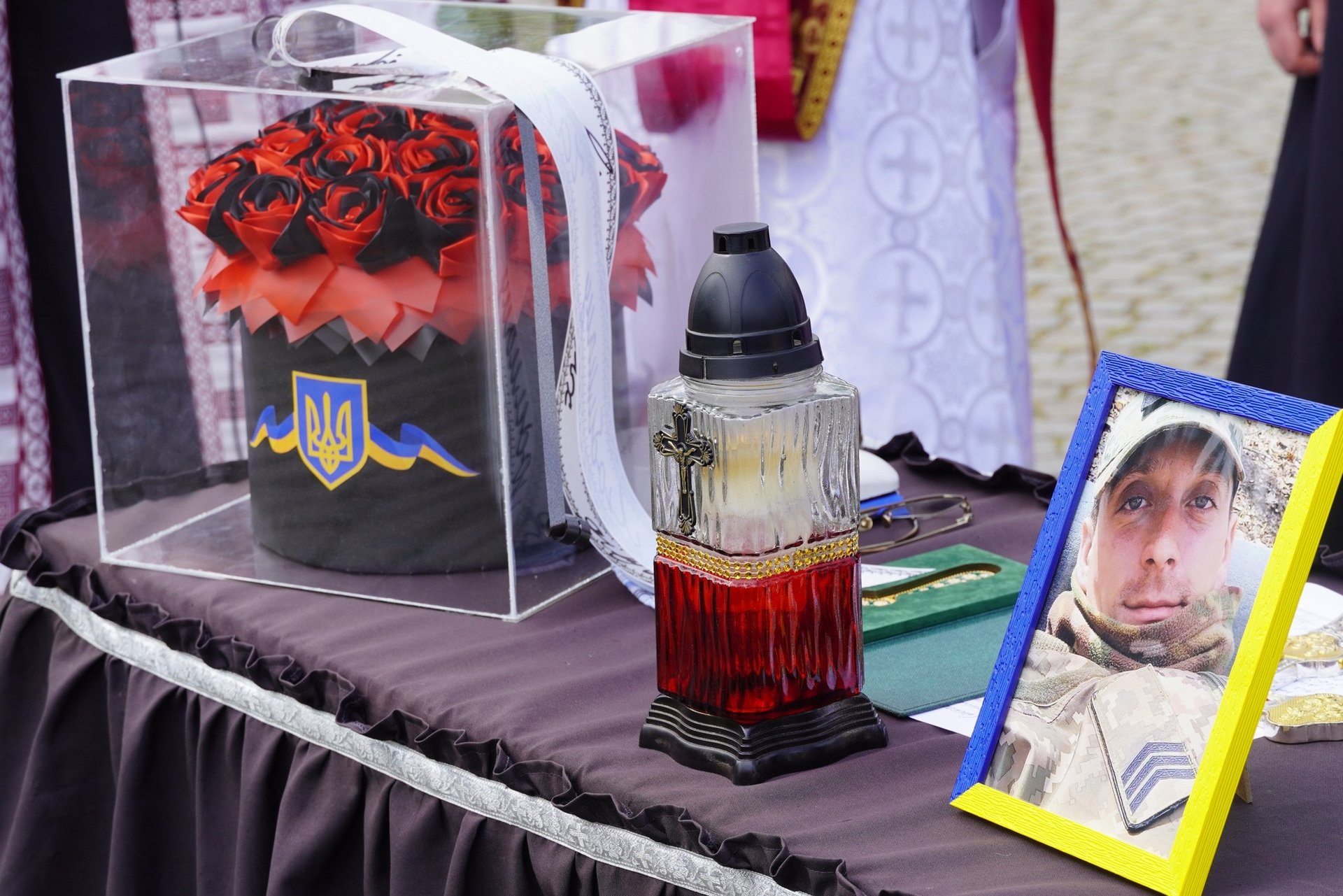 Чин похорону відбувся на площі Народній. Віддати останню шану Герою прийшли рідні, друзі, колеги, побратими, містяни та міський голова Богдан Андріїв. Під час церемонії зачитали пам’ятний лист від Головнокомандувача Збройних Сил України генерала Олександра Сирського.