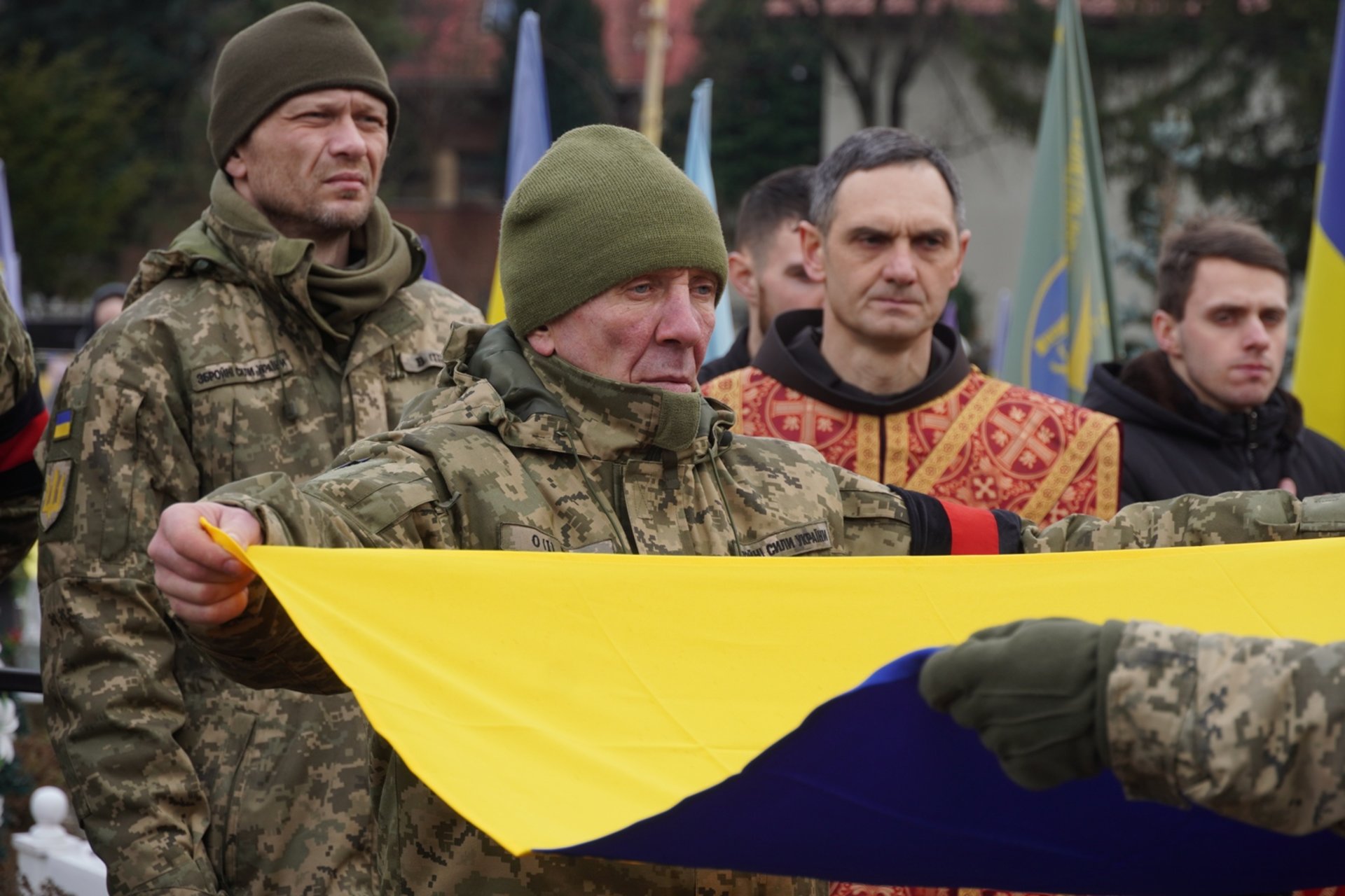 Чин похорону відбувся на площі Народній. Віддати шану полеглому військовослужбовцю прийшли рідні, друзі, побратими, ужгородці.