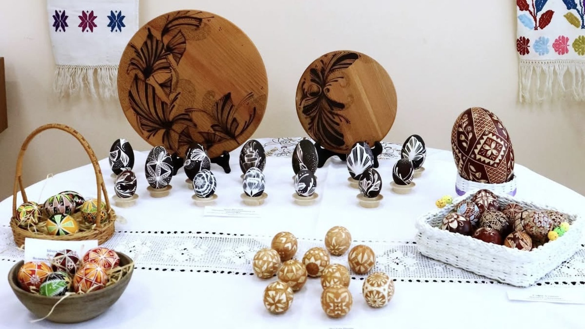 Експозиція поєднує музейні зразки та авторські роботи сучасних майстрів. Писанки доповнені вишитими рушниками й живописними творами, що створює цілісну атмосферу Великодніх свят. Захід має і благодійну мету — підтримку українських військових. Виставка-ярмарок триватиме до 26 квітня.