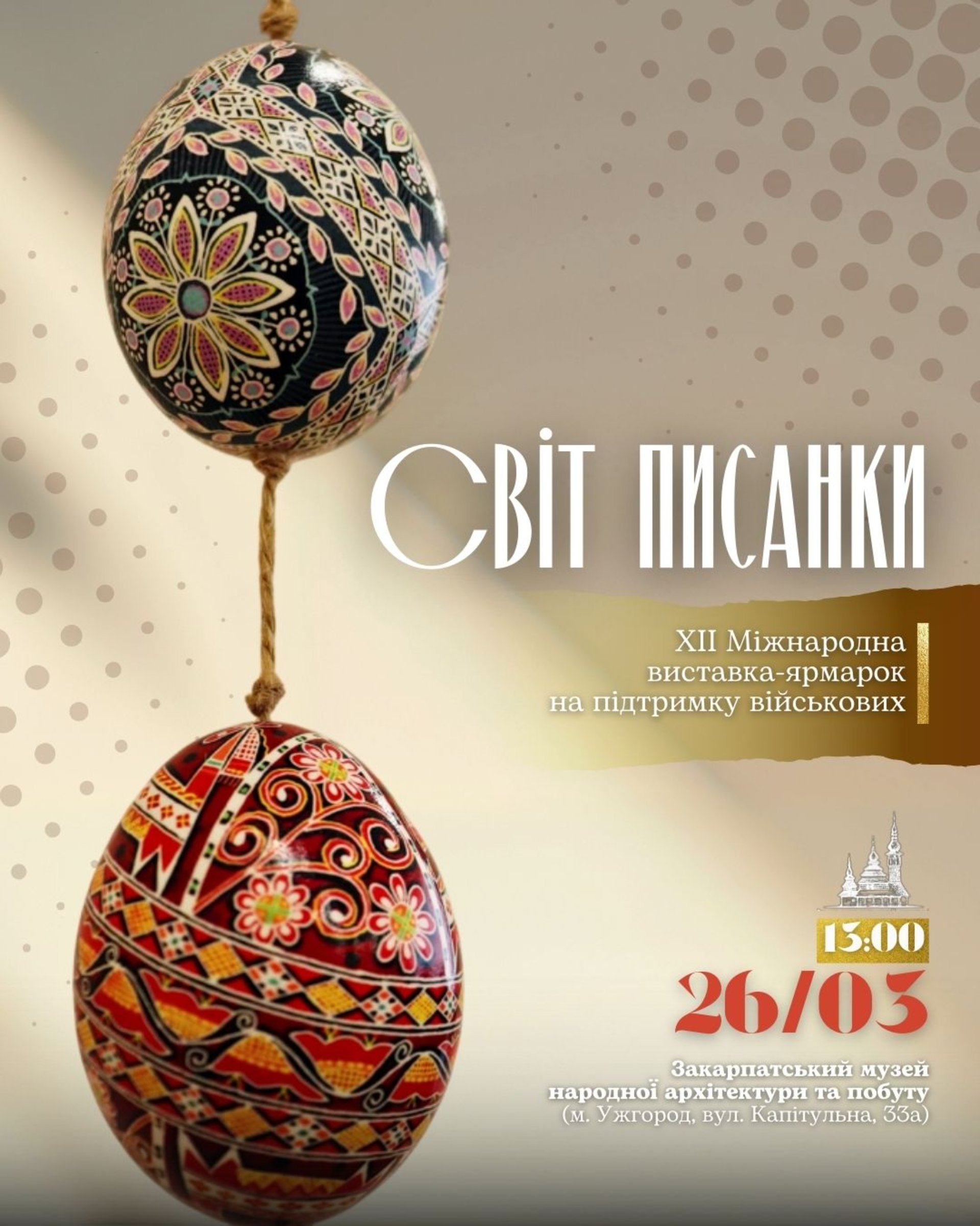 Відкриття виставки-ярмарку заплановане на 26 березня о 13:00 у виставковому просторі скансену. Подія вже п’ятий рік поспіль має благодійну мету — окрім створення великодньої атмосфери для відвідувачів, «Світ писанки» покликаний підтримати Збройні сили України.