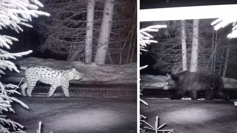 Дикі тварини потрапили в об’єктив камер спостереження. Тварини зафіксовані у засніженому лісі неподалік державного кордону.