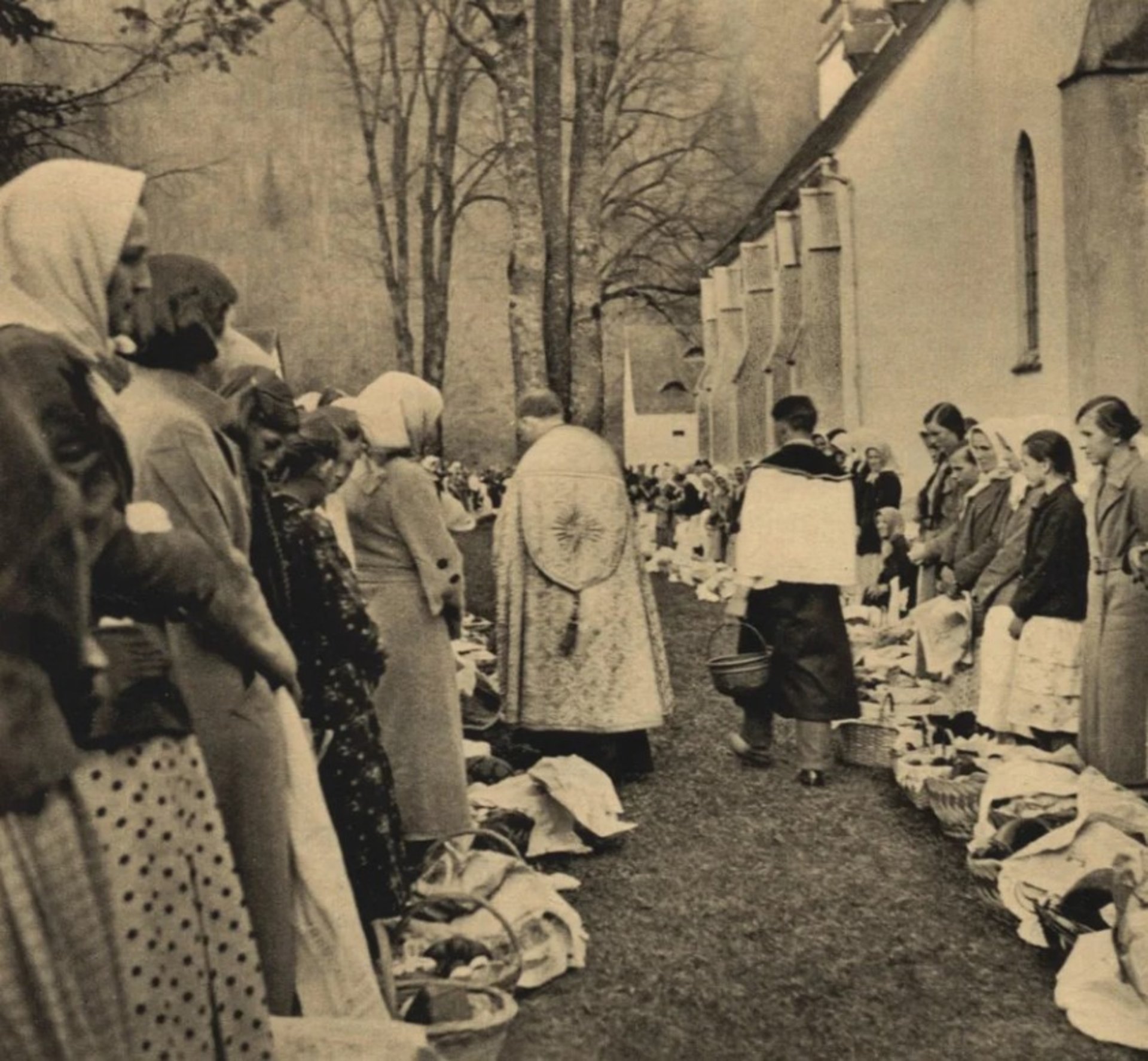 На старих фото видно яскраві моменти підготовки до свята та його святкування: люди йдуть до церкви пішки або на підводах, несучи великодні кошики з пасками, яйцями та іншими атрибутами свята. Святкове вбрання, вишиванки, аромат свіжоспечених пасок та ранкова тиша сіл створювали особливу атмосферу, яку сучасники називали справжнім дивом.