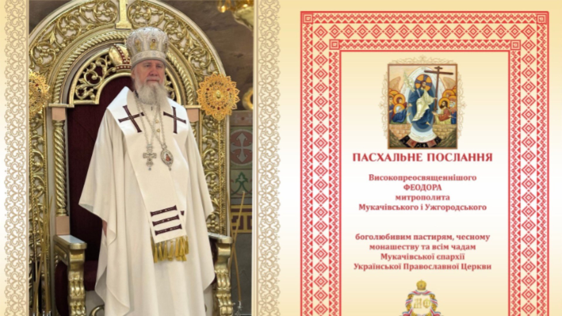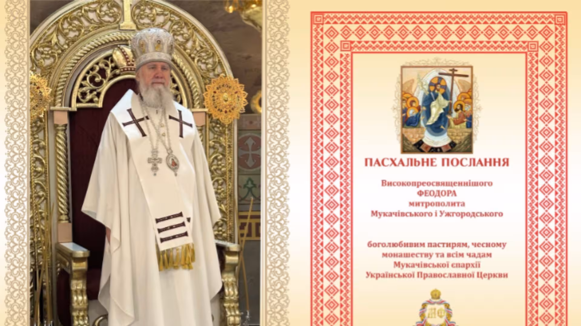Очільник Мукачівської єпархії Української православної церкви звернувся до вірян із нагоди Воскресіння Христового, наголосивши на духовному змісті свята та важливості єдності у час війни.