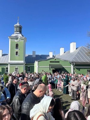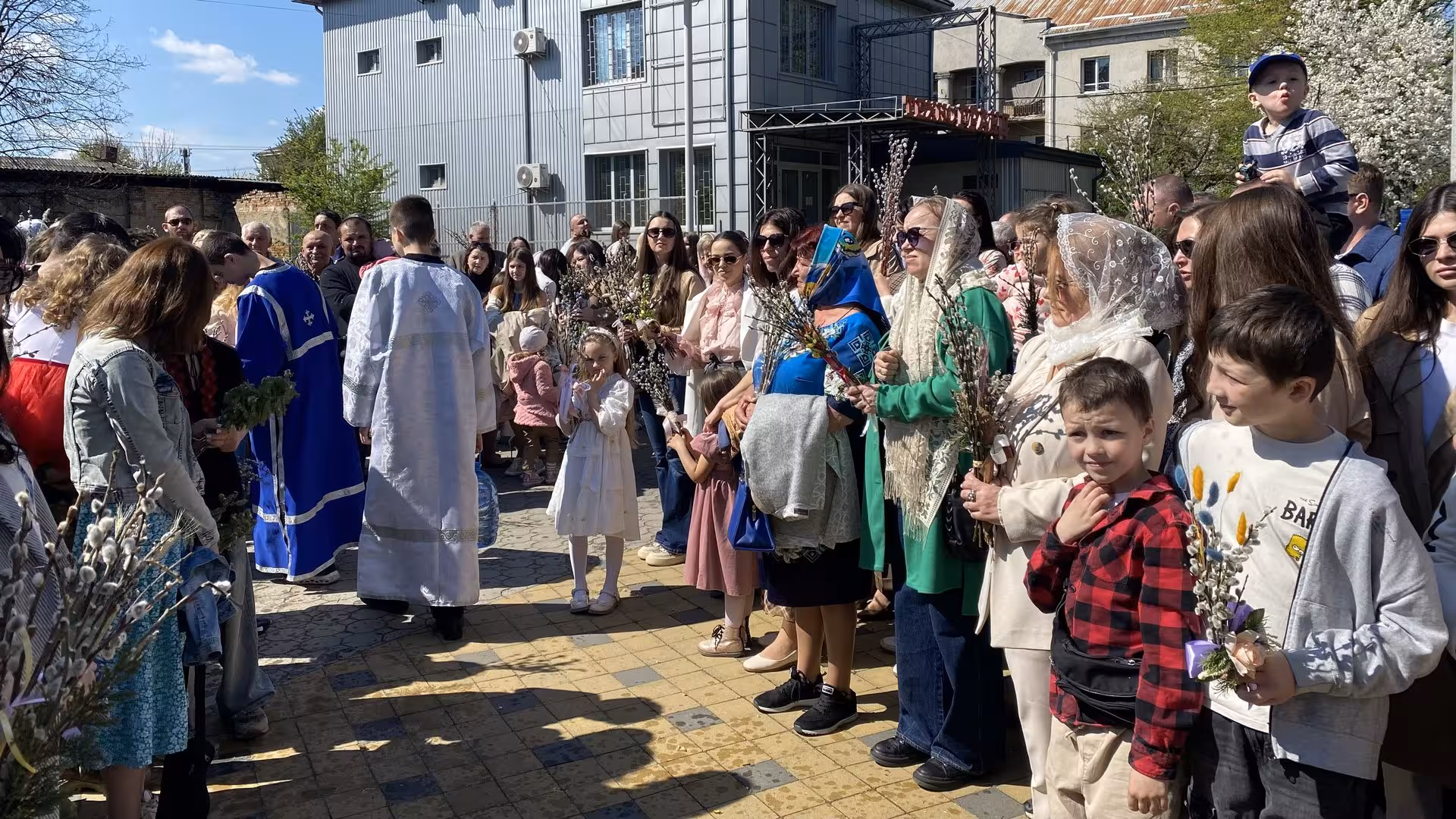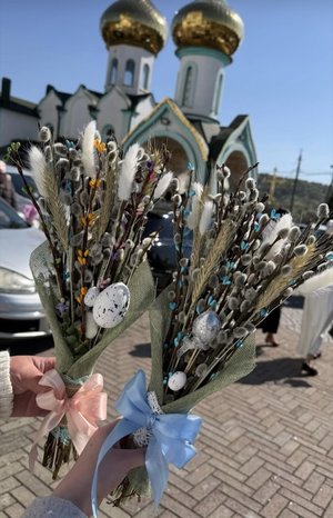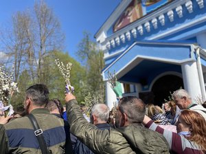 Після святкових богослужінь священники традиційно освячували вербові гілочки.