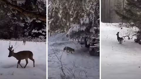 Камери спостереження прикордонників зафіксували неймовірні кадри диких тварин у зимових Карпатах. В об'єктиви знову потрапили козулі, лисиці та вовки, які вільно господарюють в лісі.