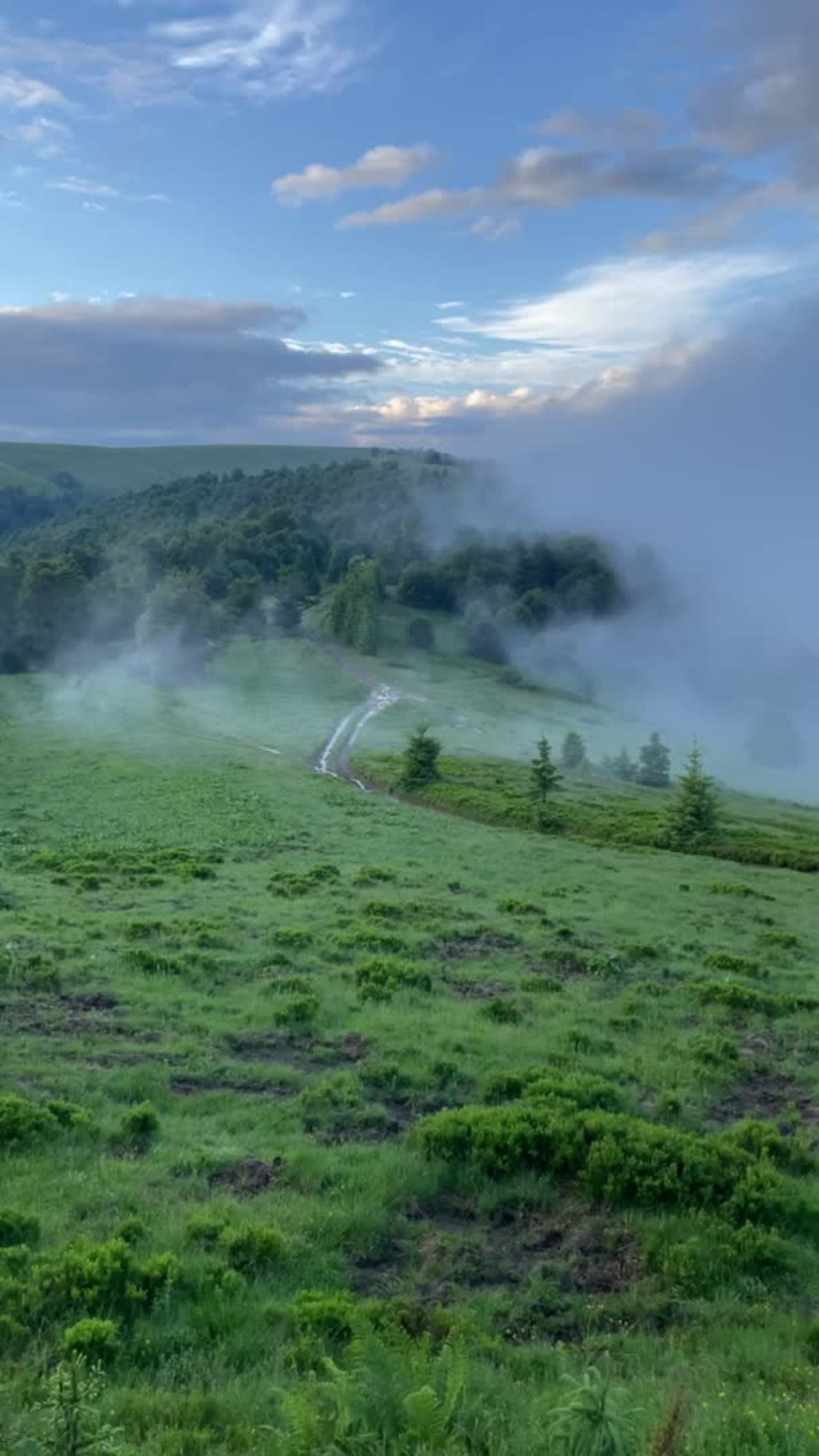 Відео демонструє вечірні Карпати, огорнуті густим туманом.